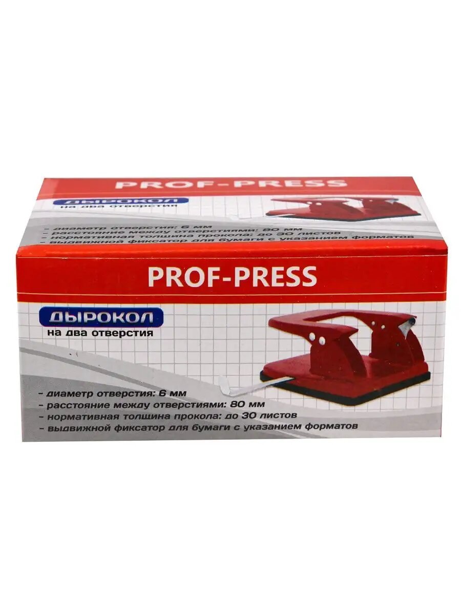 Купить Дырокол Prof-Press, до 30 листов, 2 пробивных отверстия, с линейкой, черный
