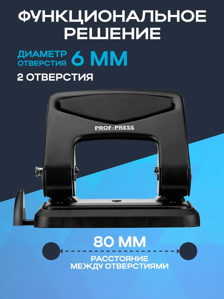 Дырокол Prof-Press, до 30 листов, 2 пробивных отверстия, с линейкой, черный