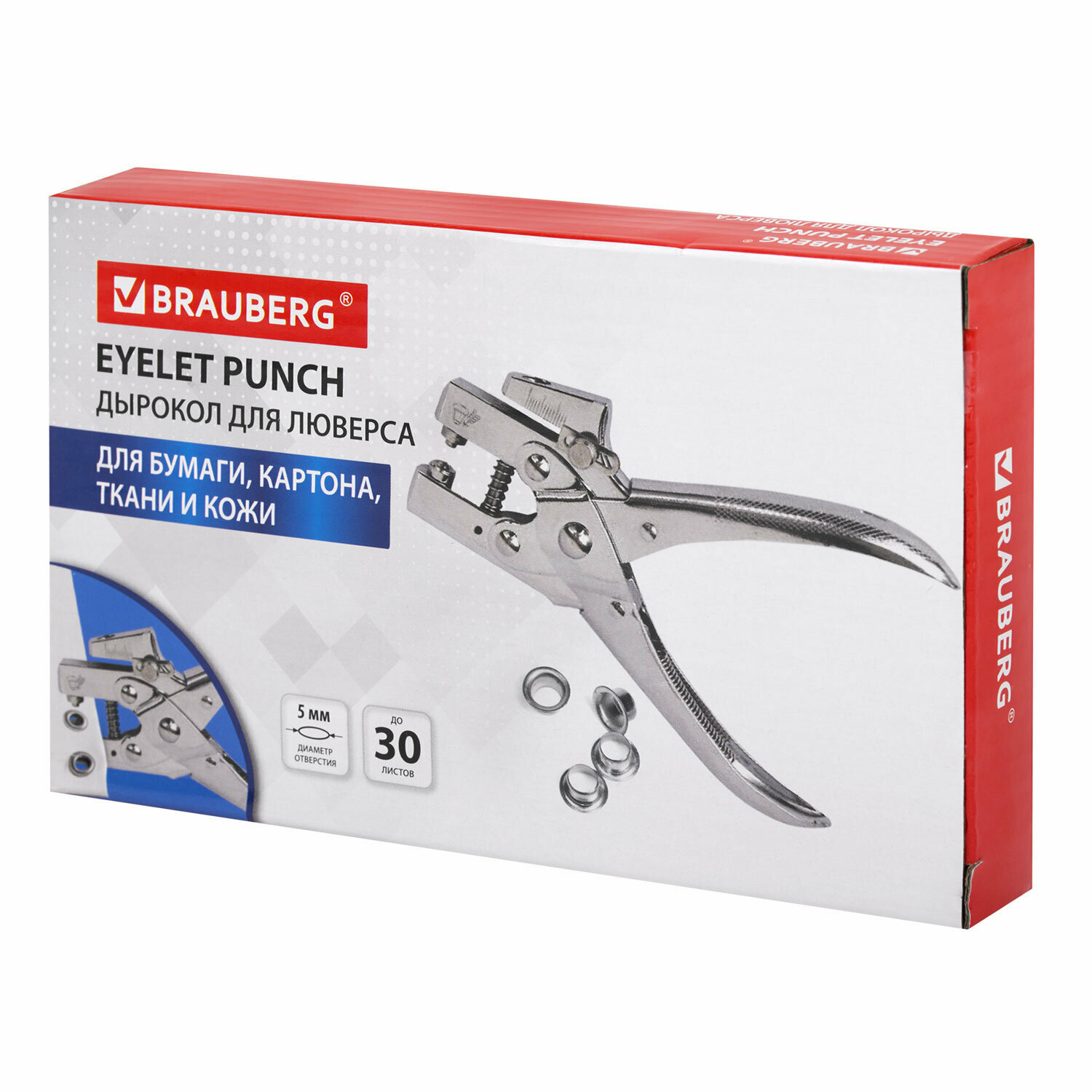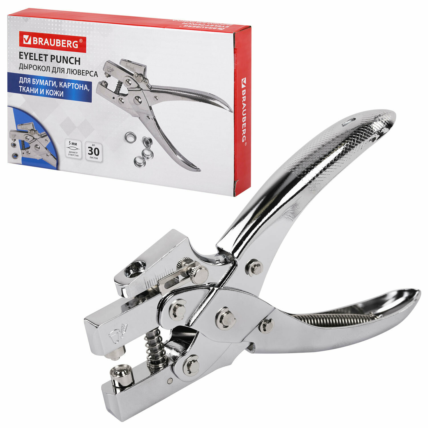 Дырокол металлический на 1 отверстие для люверса до 30 л, диаметр отверстия 5 мм, BRAUBERG, 272763 интересное: