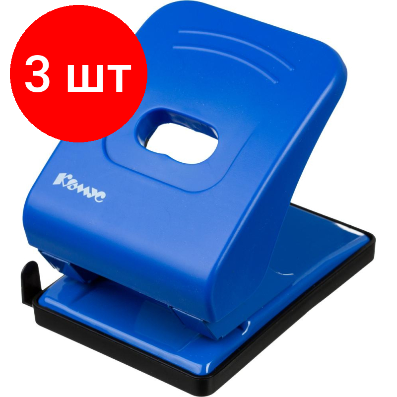 Купить Комплект 3 штук, Дырокол Комус Vigor 6365 синий до 40л
