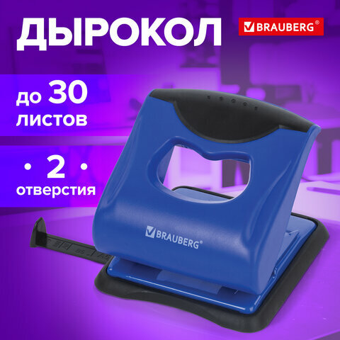 Комплект 2 шт, Дырокол BRAUBERG "JET PRO", до 30 листов, сине-черный, 228600