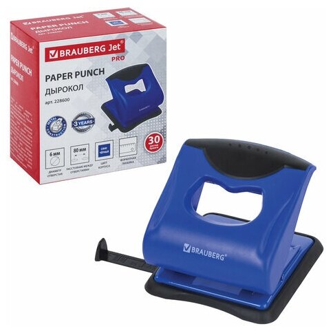 Купить Комплект 5 шт, Дырокол BRAUBERG "JET PRO", до 30 листов, сине-черный, 228600