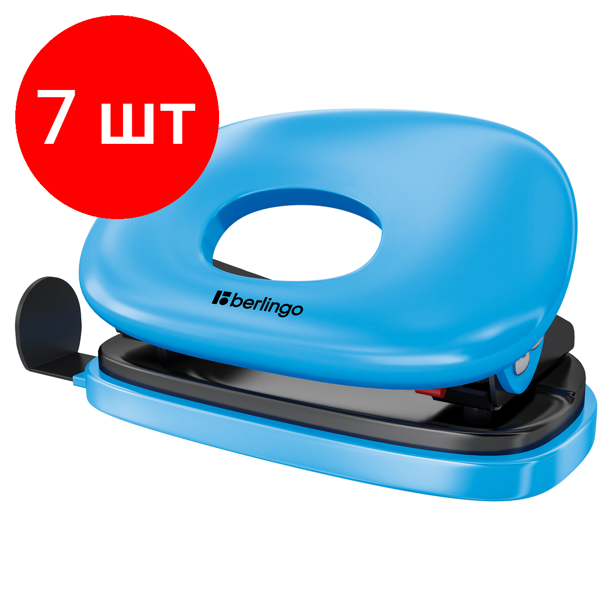 Купить Комплект 7 шт, Дырокол Berlingo "Round" 10л, пластиковый, голубой