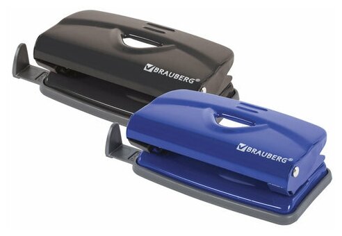 Купить 2 шт. Дырокол металлический BRAUBERG "Universal+", до 10 листов, ассорти (синий /черный), 222524