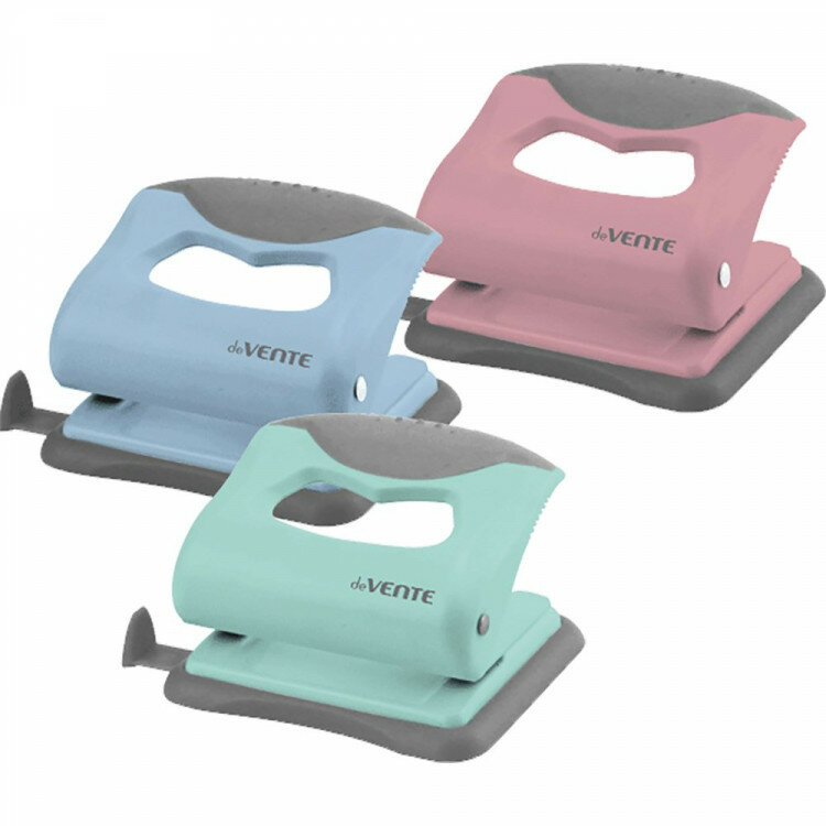 Дырокол (20л) deVENTE пластиковый с каучуковой вставкой, с линейкой Pastel арт.4020901. Количество в наборе 2 шт. интересное: