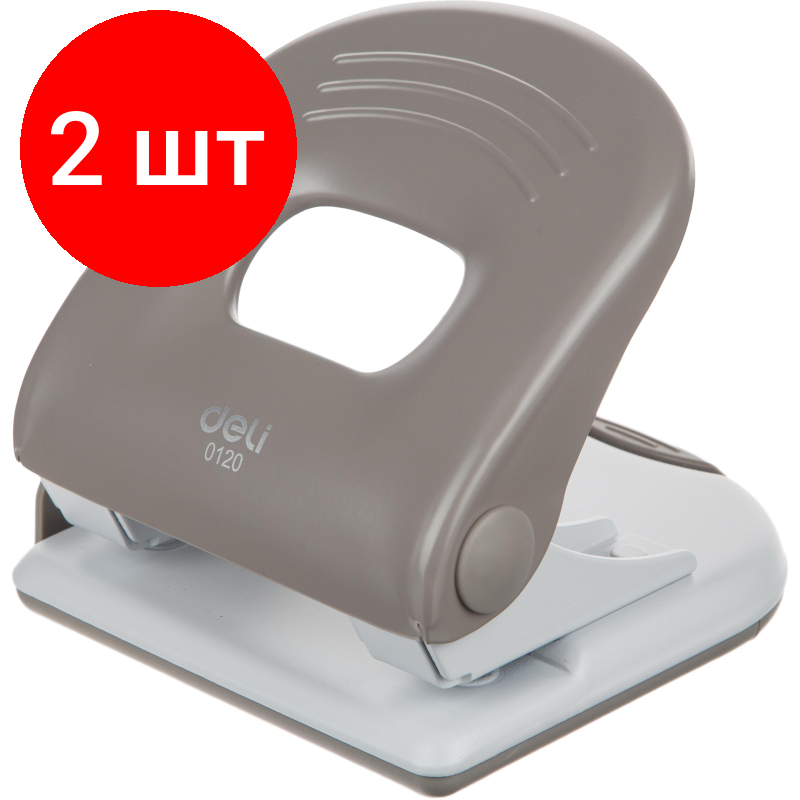 Купить Комплект 2 штук, Дырокол Deli PRO E0120, макс:40 л, металл, 2 отверстия, с линейкой, серый