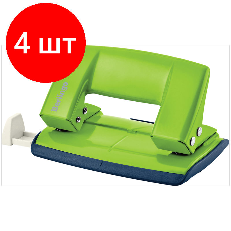 Купить Комплект 4 шт, Дырокол Berlingo "Power TX" 10л, металлический, с линейкой, зеленый