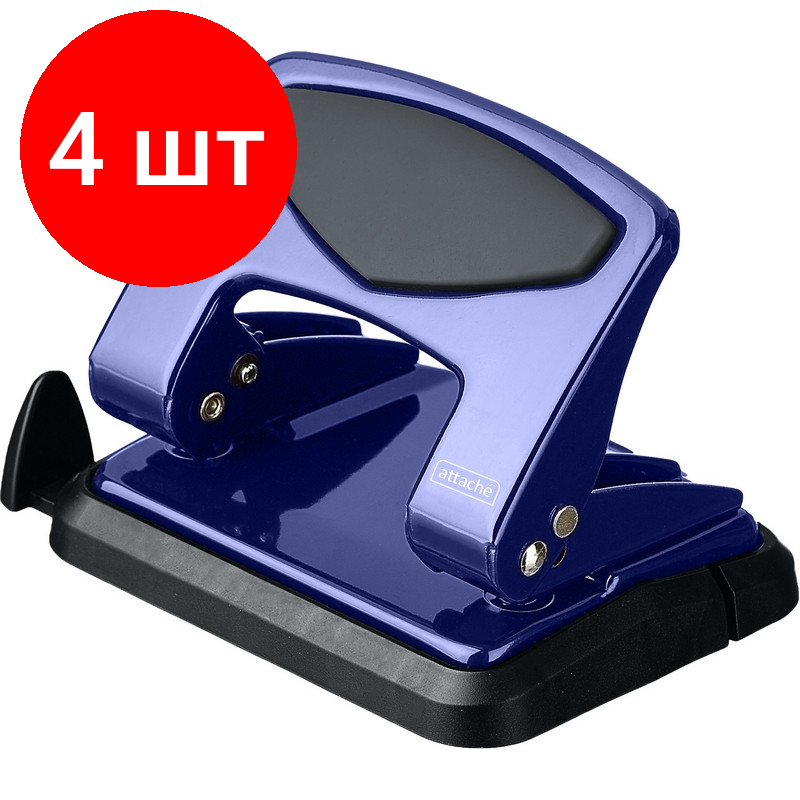 Комплект 4 штук, Дырокол Attache до 25 листов, с блокиратором, металлич, синий интересное: