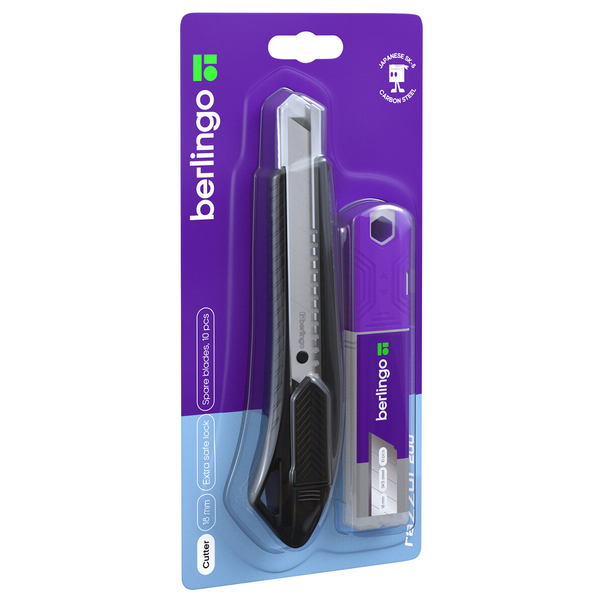 Нож канцелярский 18мм Berlingo "Razzor 200", черный + лезвия сменные 10шт, блистер, европодвес интересное: