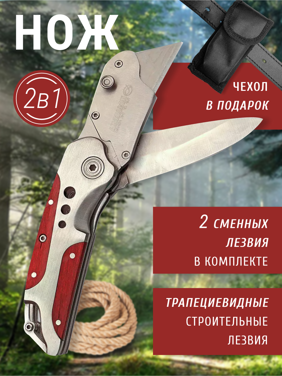 Нож складной 2в1 усиленный со сменными трапецевидными лезвиями Чехол в Подарок! интересное: