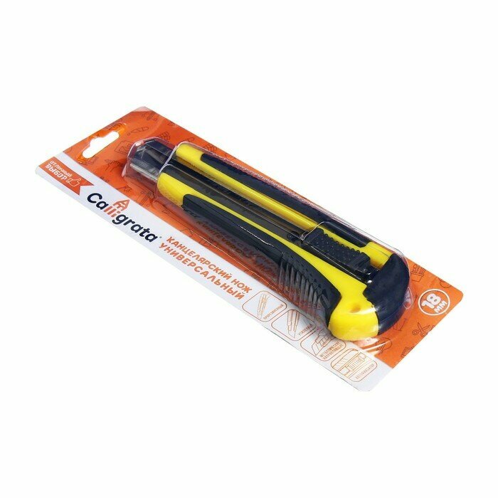 Нож канцелярский 18 мм пластик с мет, направляющ, фиксатор, прорезиненный микс в блистере, 5799790 интересное: