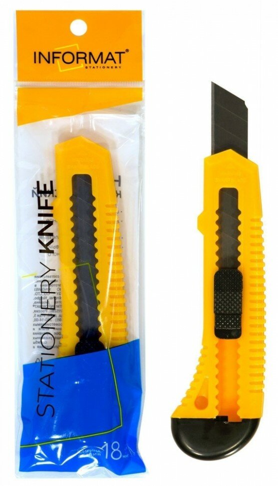 Нож канцелярский Informat 18 мм, с механической фиксацией, желтый интересное: