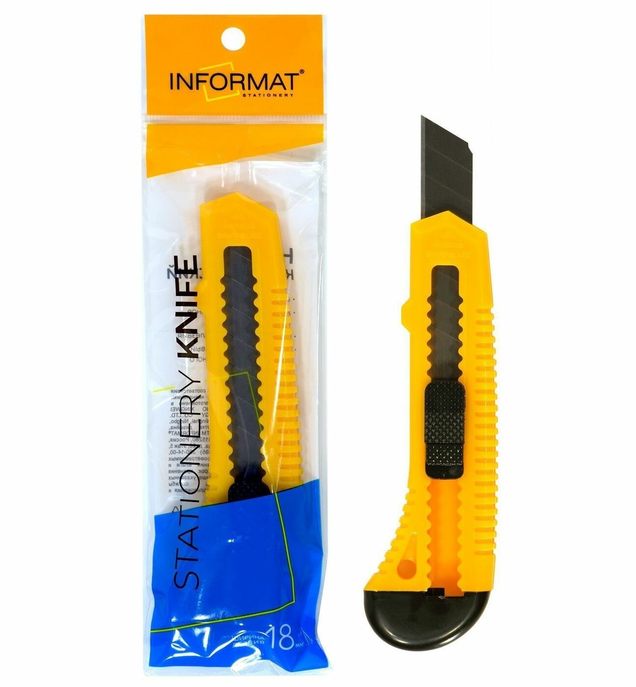 Купить Нож канцелярский Informat 18 мм, с механической фиксацией, желтый