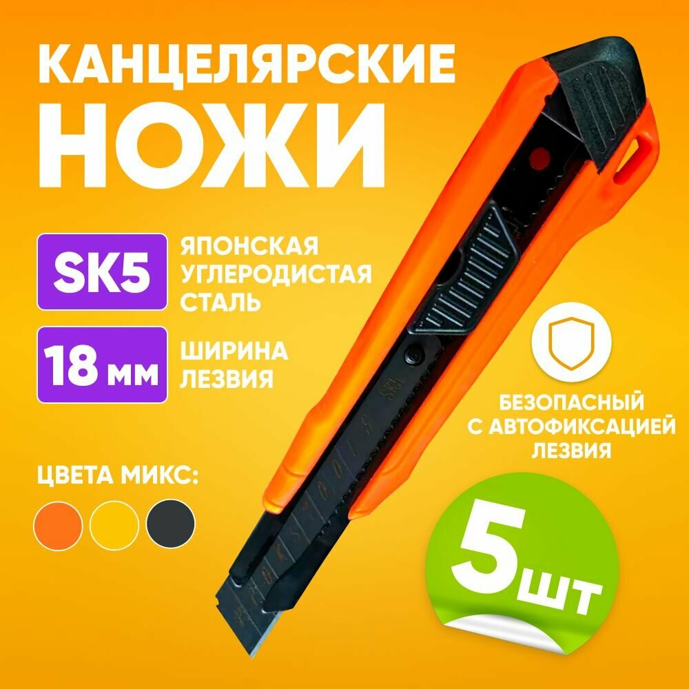 Нож канцелярский строительный с выдвижным лезвием 18мм, 5 шт. интересное: