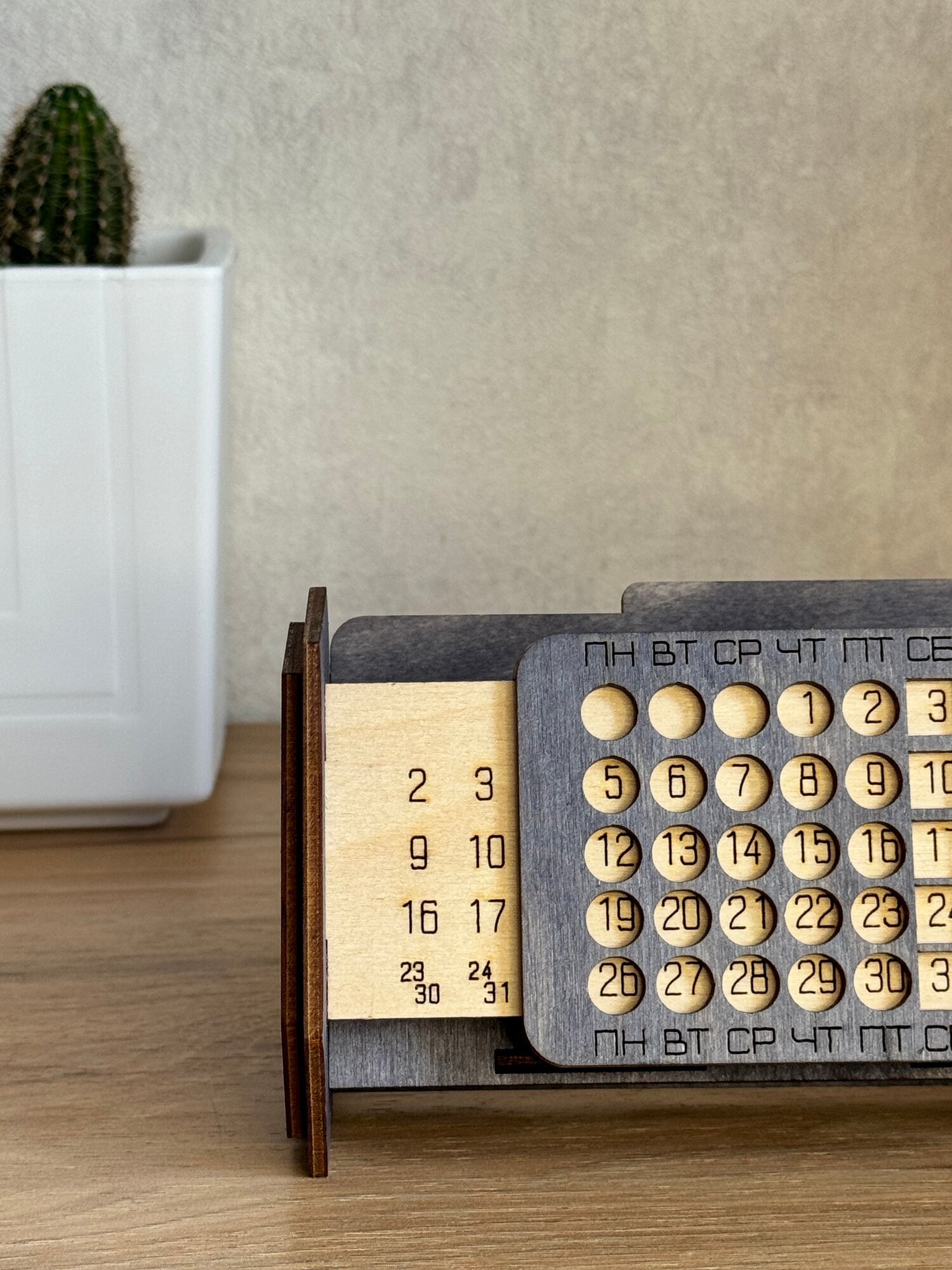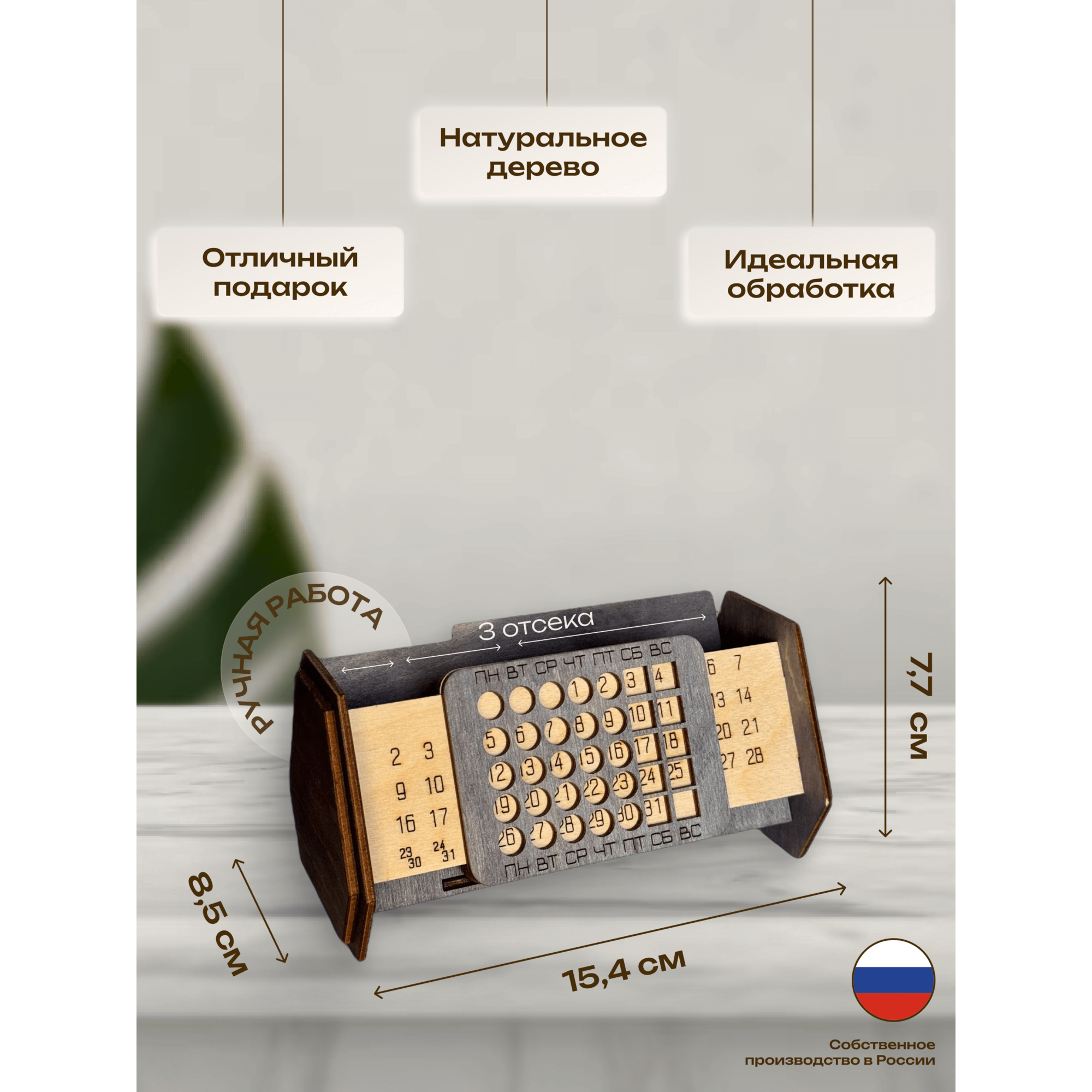 Вечный календарь-органайзер из натурального дерева под ручки, визитки, мобильный телефон