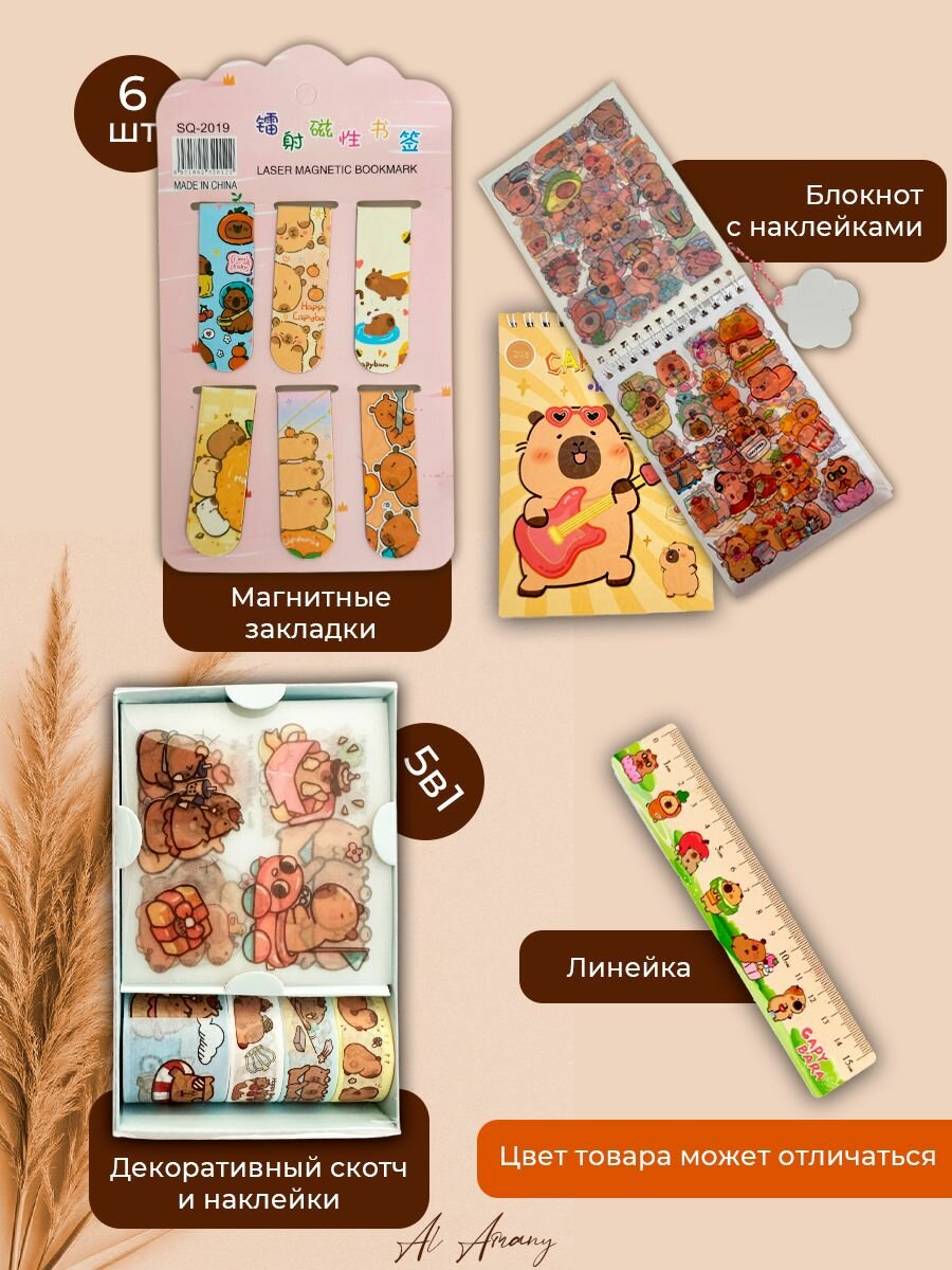 Купить Подарочный набор канцелярии для школы капибара 37 предметов, школьные принадлежности, подарок выпускнику и первокласснику