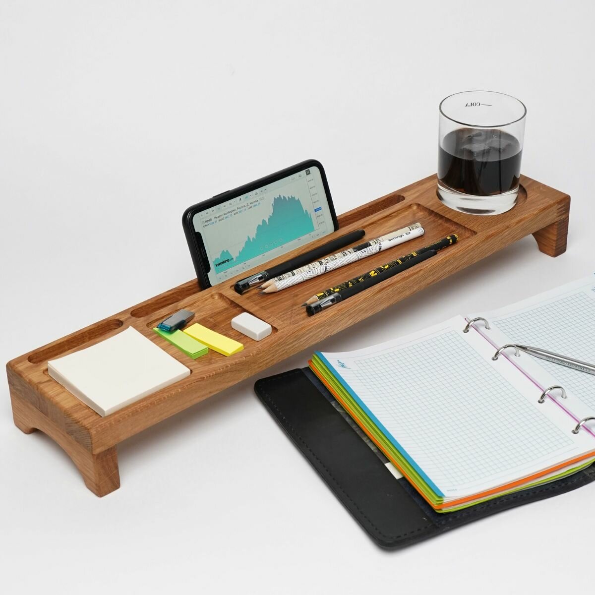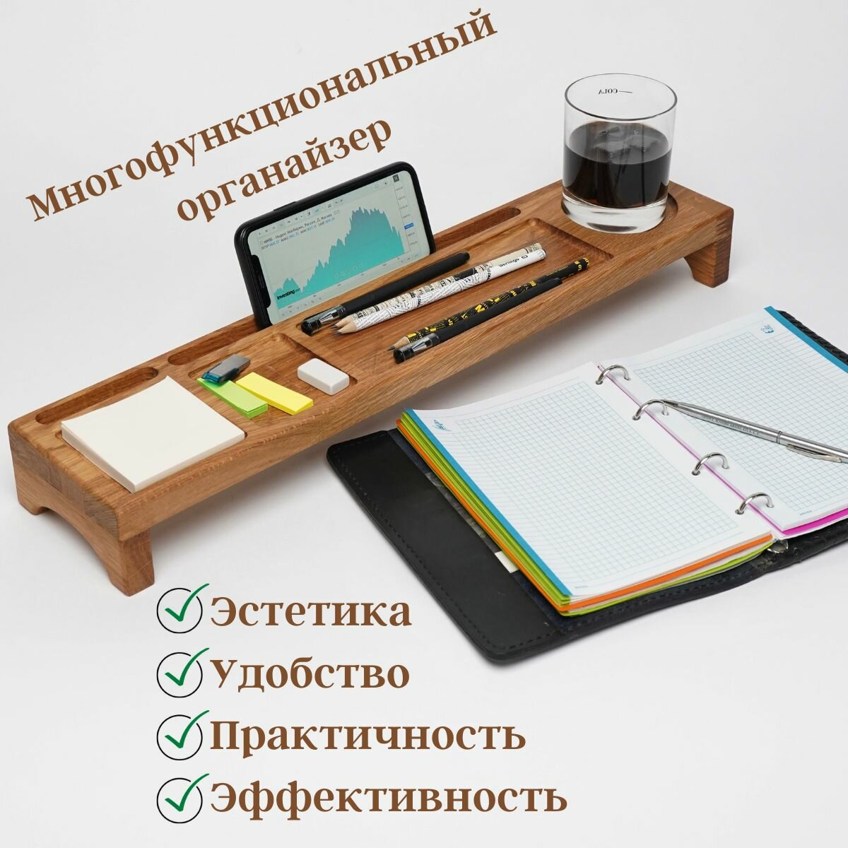 Подставка органайзер для канцелярии из дерева дуб, в офис, дом, подарок руководителю интересное:
