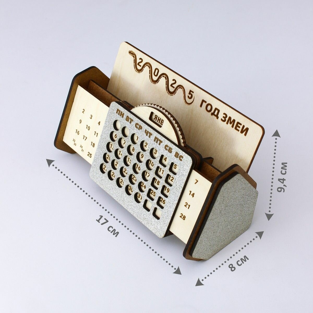 Купить Настольный органайзер с вечным календарём для канцелярии, глиттерное серебро, с принтом символ Года Змеи 2025