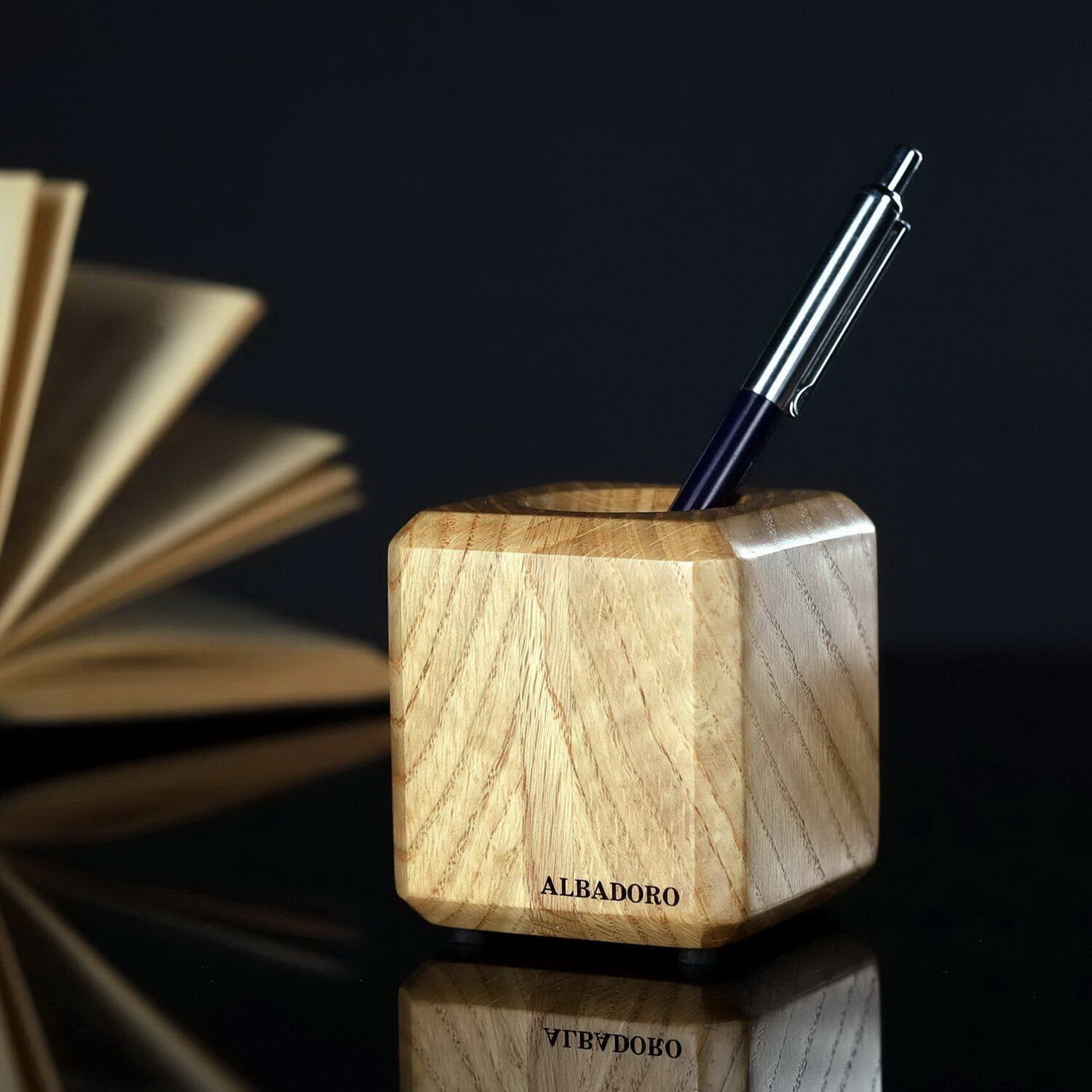 Подставка органайзер из дуба для карандашей и ручек, стакан канцелярский. 1 отделение.
