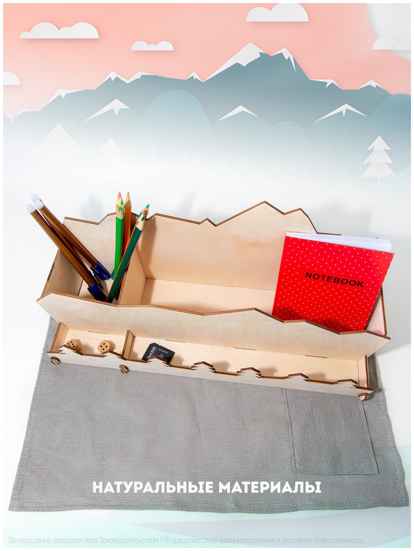 Деревянный органайзер для канцелярии и документов Robokub Горы - подставка для карандашей и ручек интересное: