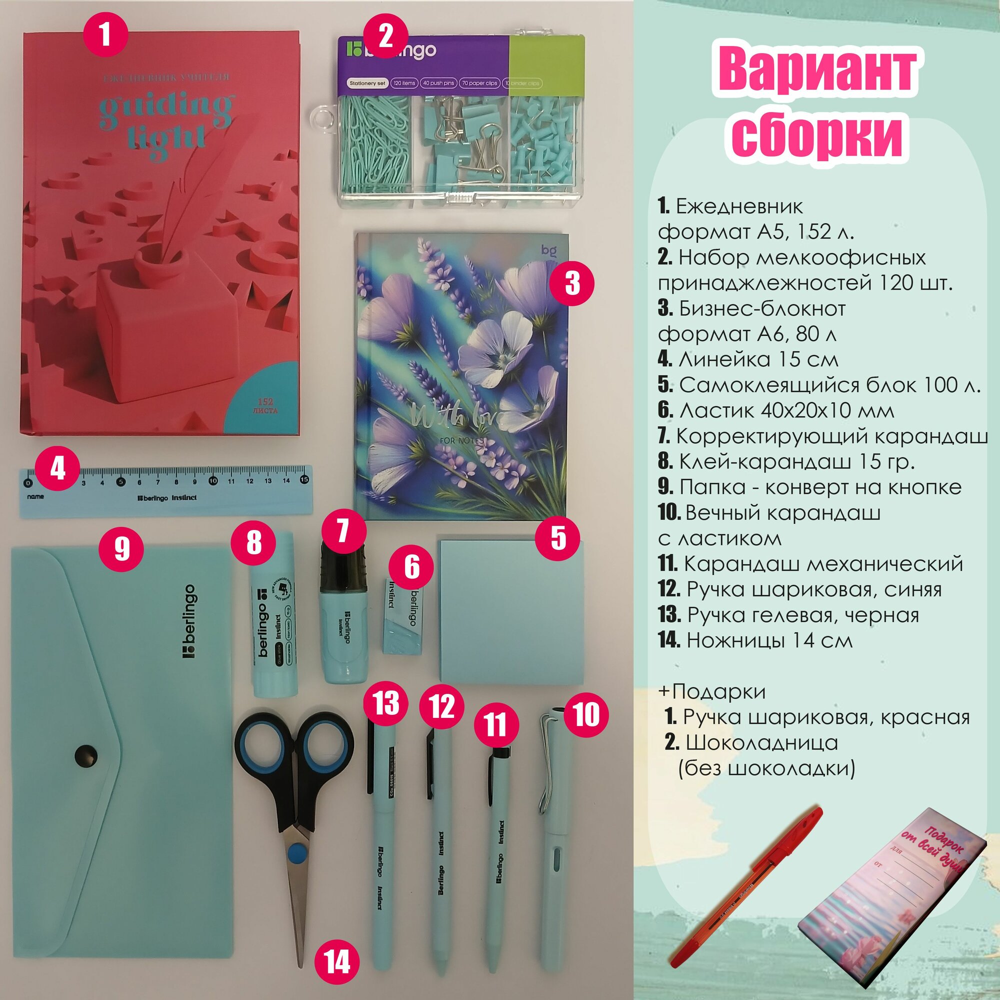 Купить Подарочный набор для учителя 14 предметов +2 подарка, набор канцелярии в коробке учителю (ежедневник + канцелярия)