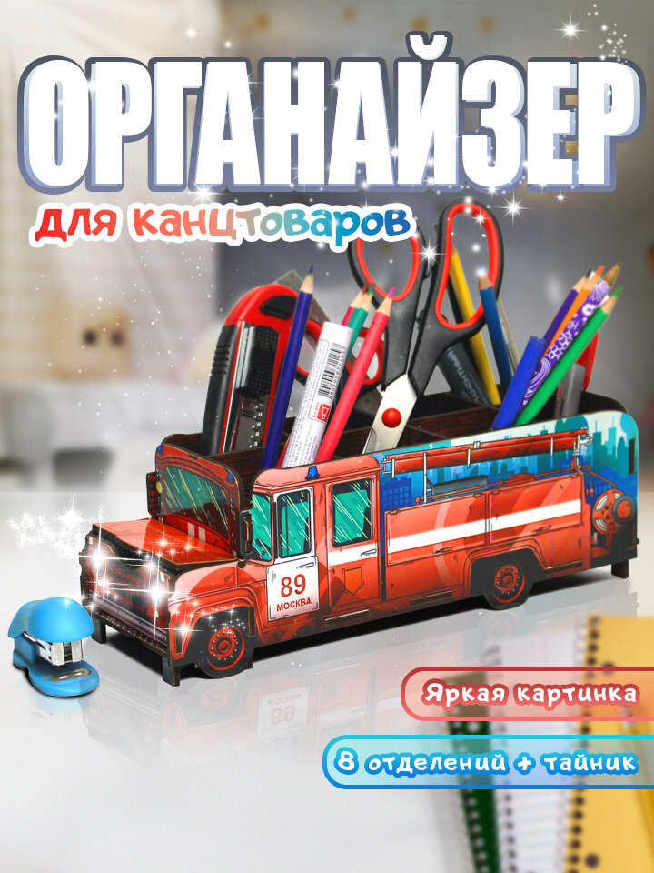 Органайзер MZR "Пожарная машина", ХДФ, 8 отделений, скрытый отсек, красный интересное: