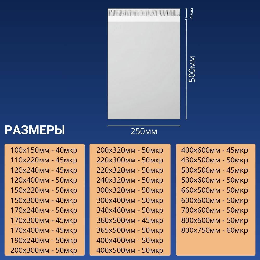 Купить Курьерский почтовый сейф пакет непрозрачный 250x500 мм 25х50 см 50 мкм 100 шт
