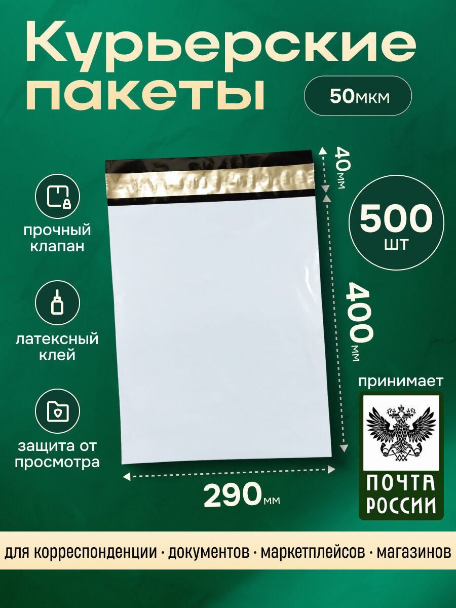Курьер-пакет 290х400+40мм (50 мкм) 500 шт, упаковочный сейф-пакет без кармана интересное: