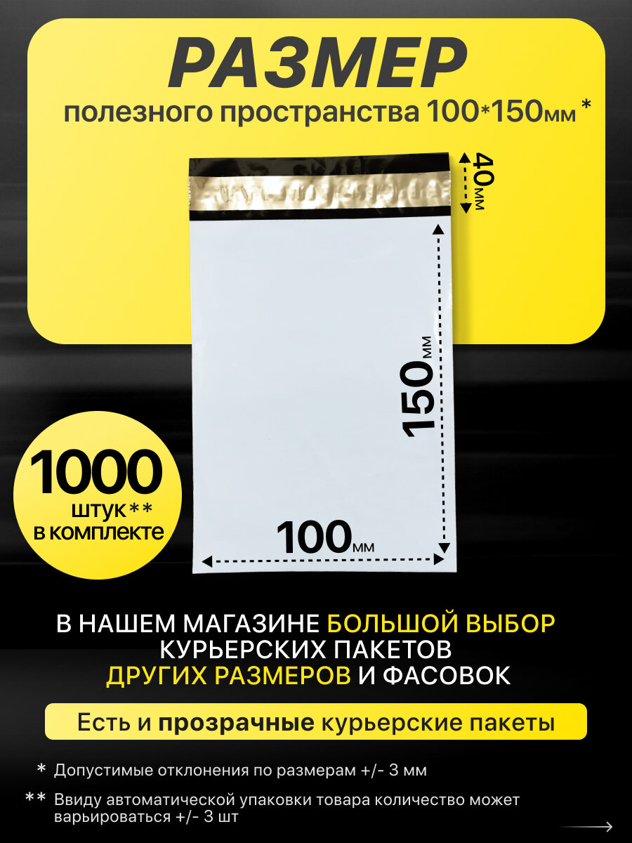 Курьер-пакет 100х150+40мм (50 мкм) / Без кармана / 1000 штук интересное: