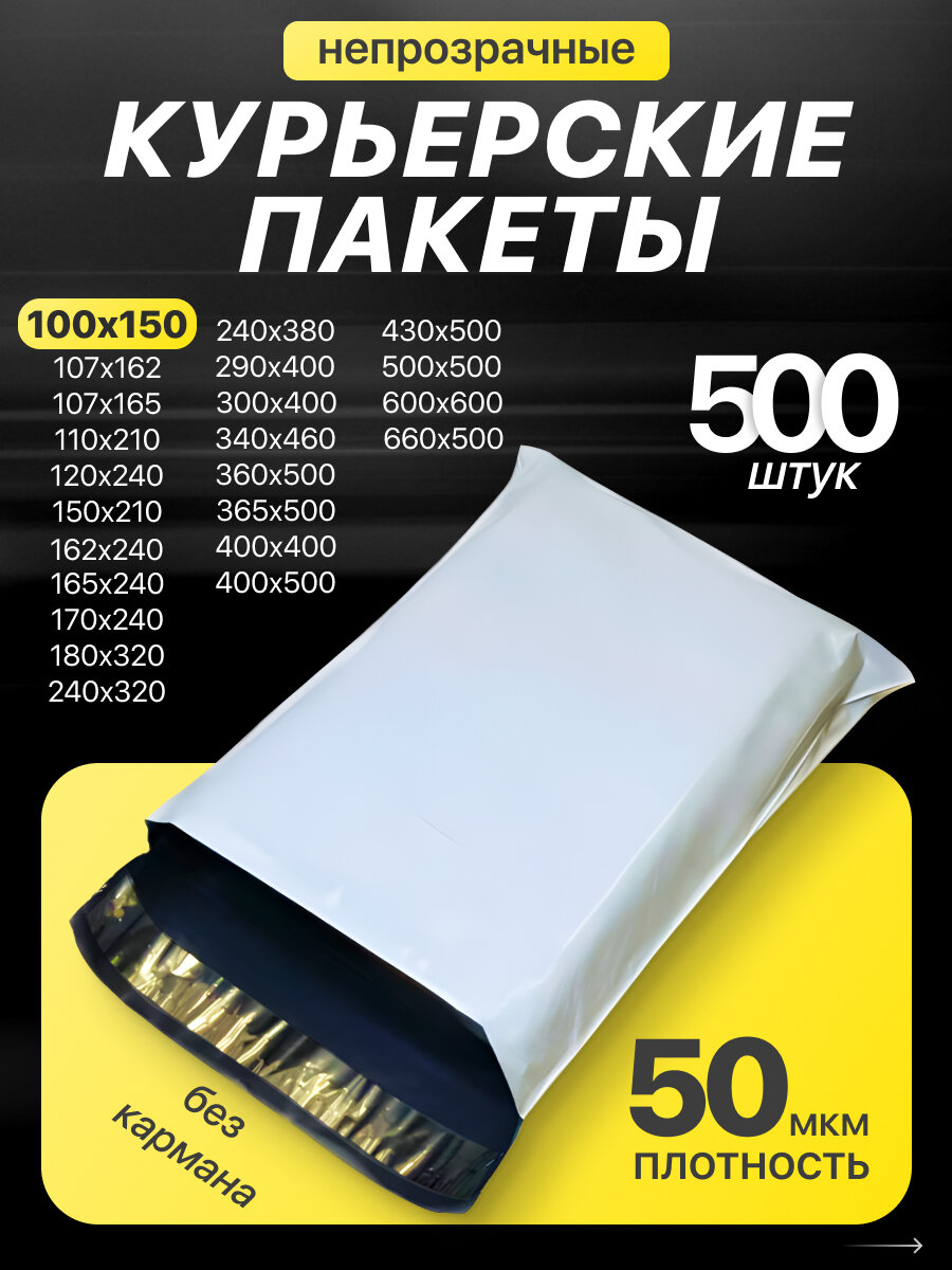 Курьер-пакет 100х150+40мм (50 мкм) 500 шт, упаковочный сейф-пакет без кармана интересное: