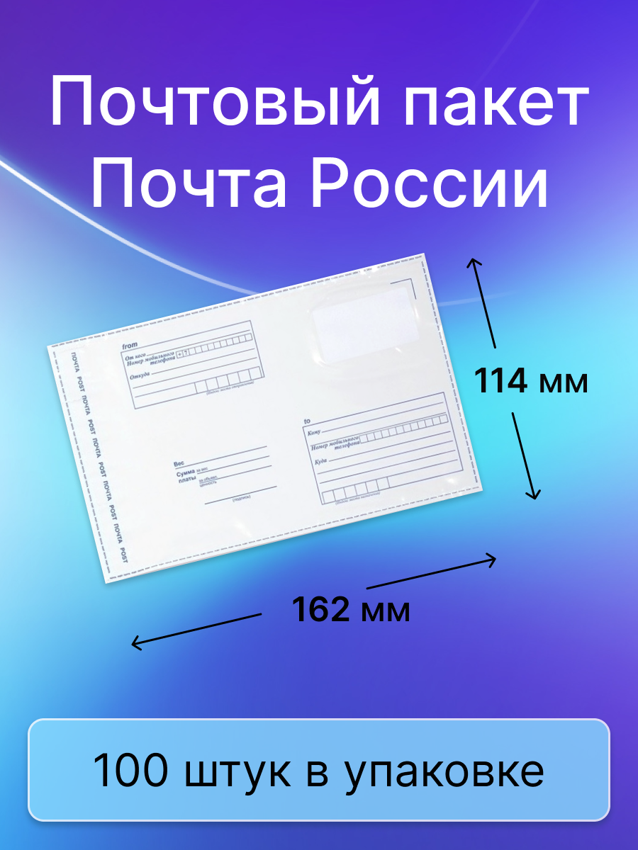 Ниже Вы можете прочитать отзывы на Пакет почтовый "Почта России" 114х162 мм, с этикеткой, 60 мкм, 100 штук, ознакомится с подробными характеристиками, посмотреть интересные обзоры и фотографии на Пакет почтовый "Почта России" 114х162 мм, с этикеткой, 60 мкм, 100 штук.