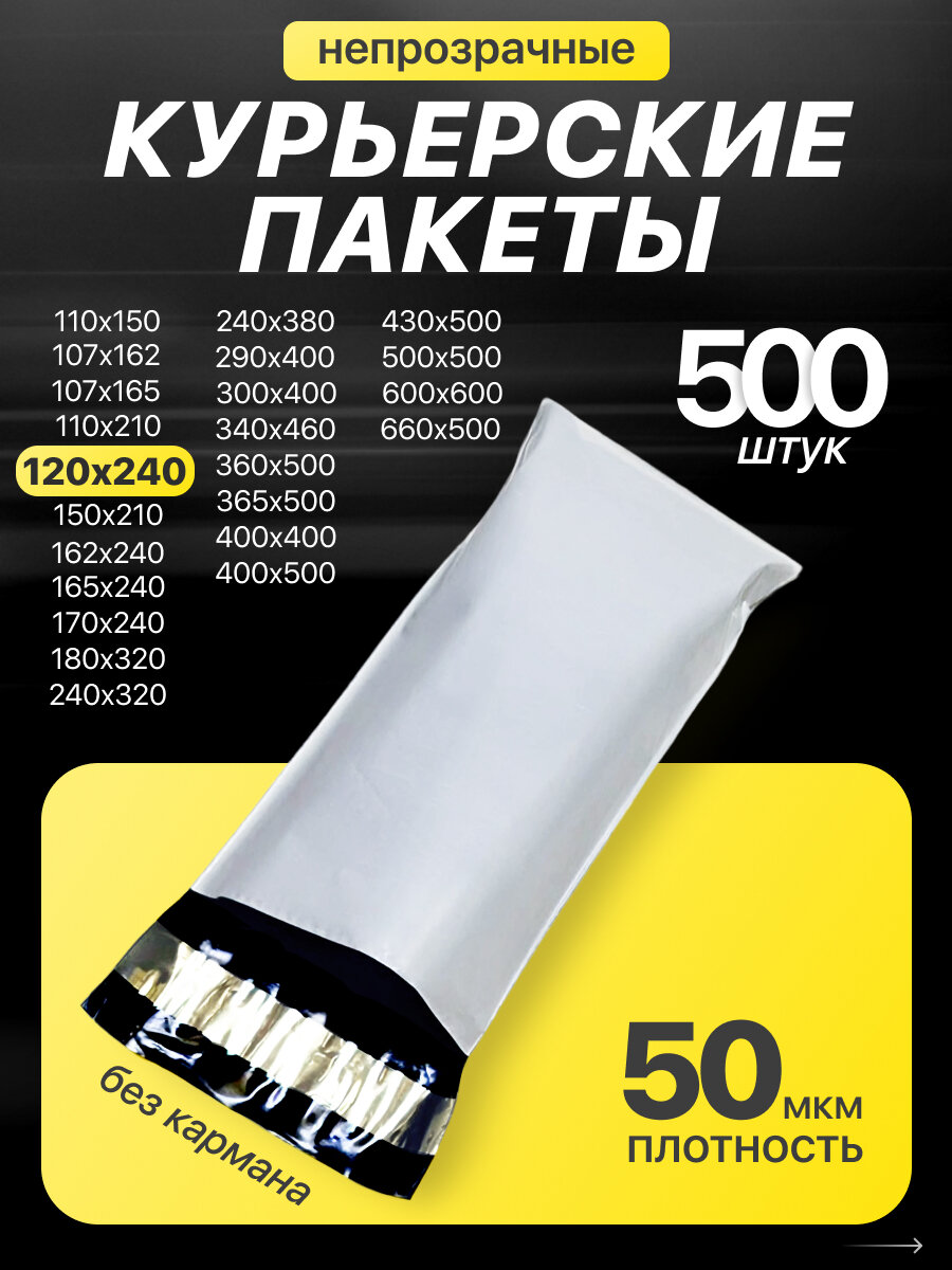 Курьер-пакет 120х240+40мм (50 мкм) 500 шт, упаковочный сейф-пакет без кармана интересное: