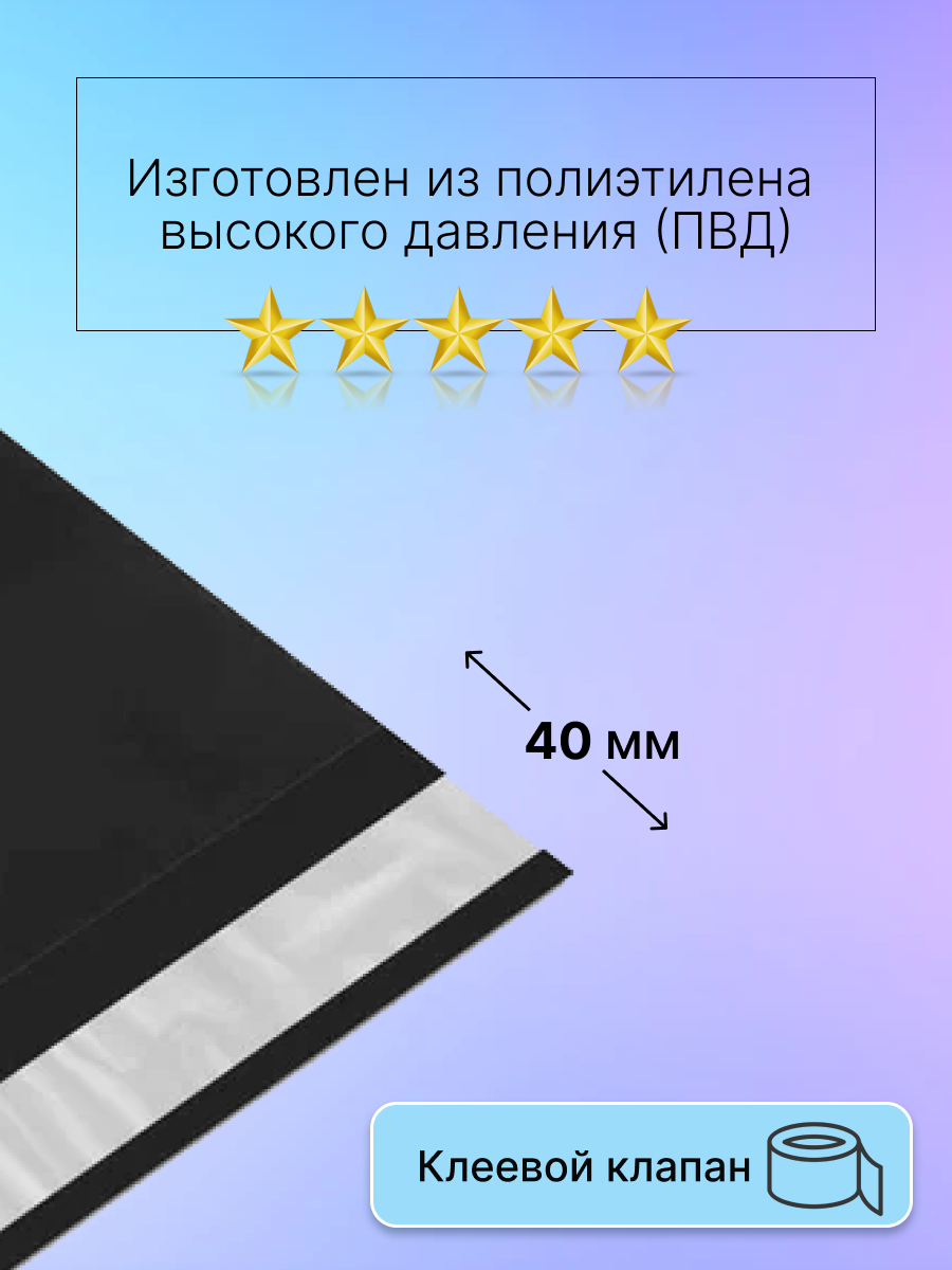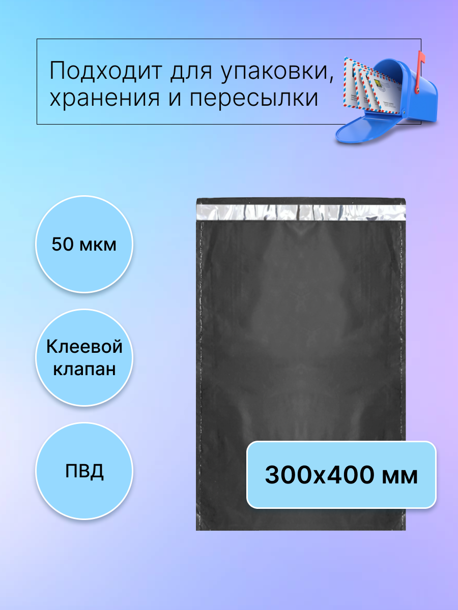 Курьерский пакет 300х400 мм. без кармана, клапан 40 мм. (50 мкм.) черный, 20 штук интересное: