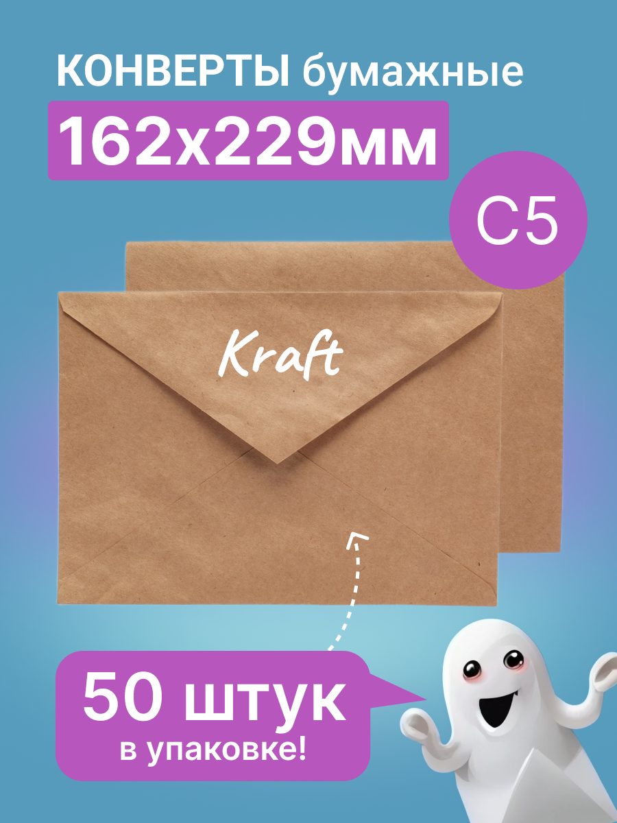Конверт крафт С5 (162х229 мм.), треугольный клапан (50 штук в упаковке) интересное:
