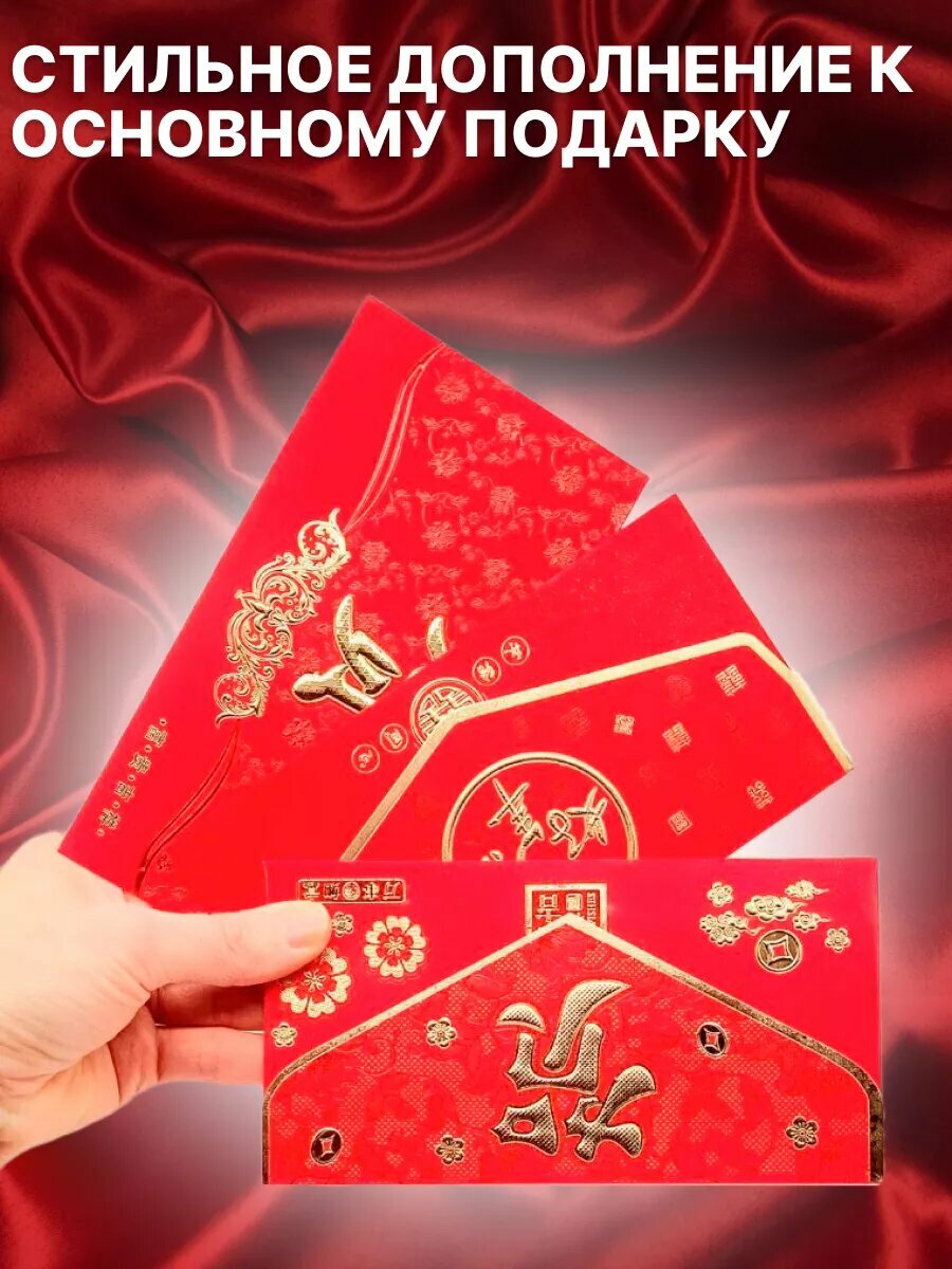 Купить Конверт для денег подарочный фен шуй набор 3 штуки, цвет красный