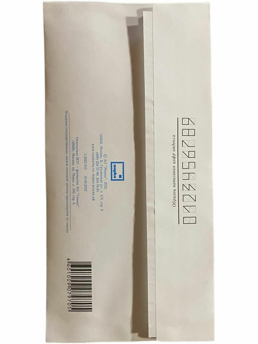 Конверт Почта России с Литерой А Формат Е65 (110х220 мм) 10шт. + 20 марок по 3р