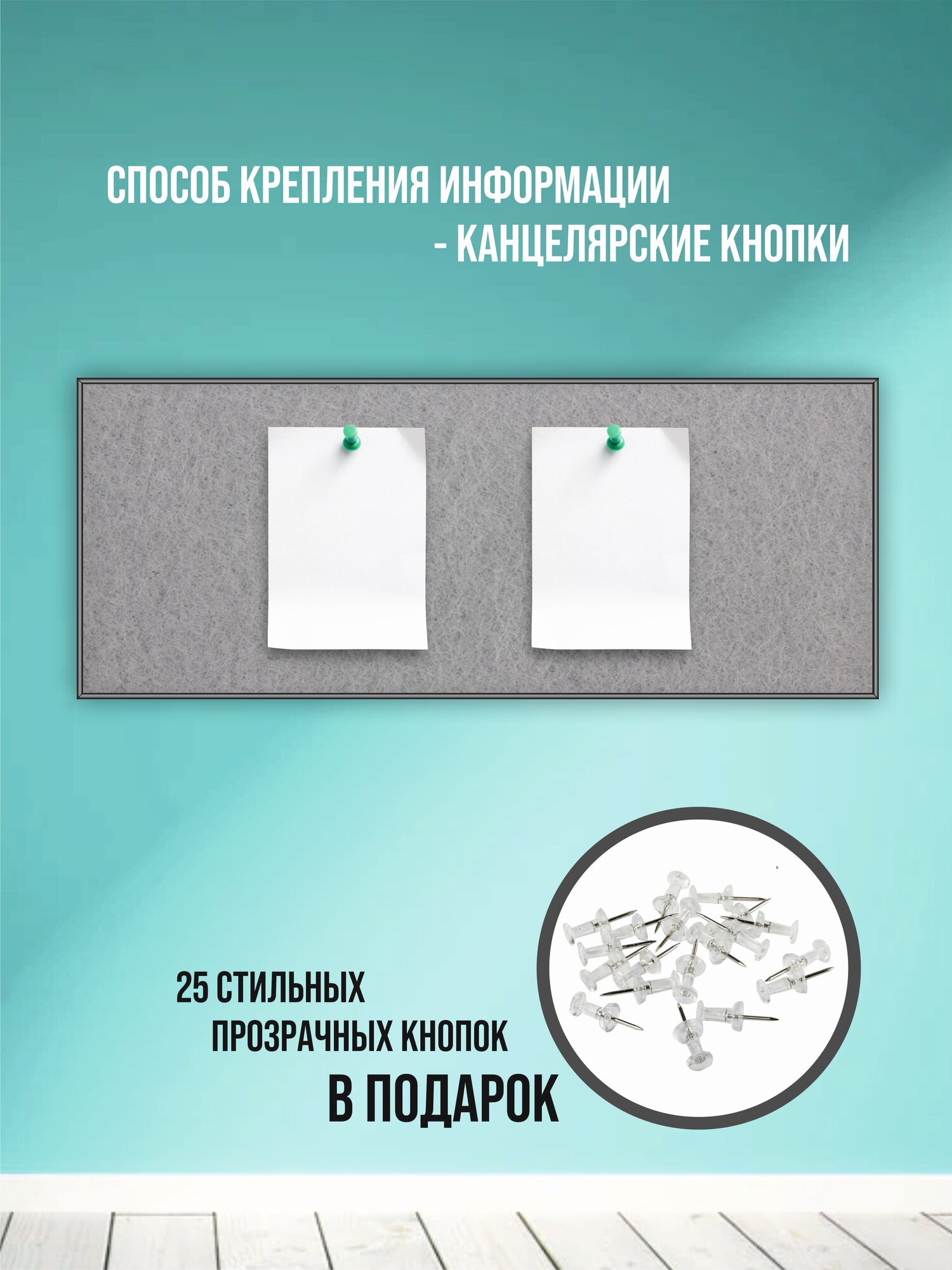 Купить Доска из фетра текстильная информационная для заметок, фото, в алюминиевой черной раме 40х100 см