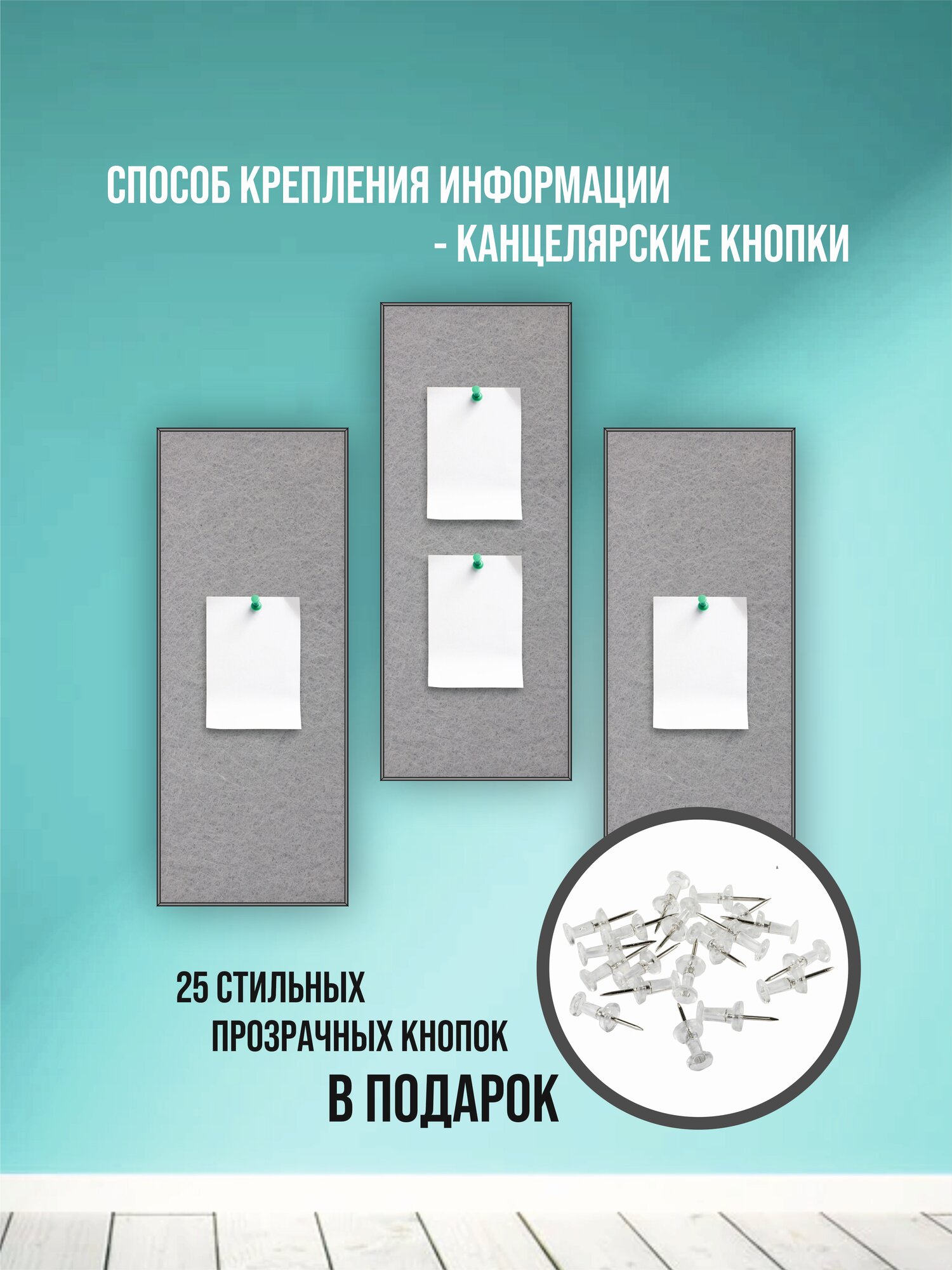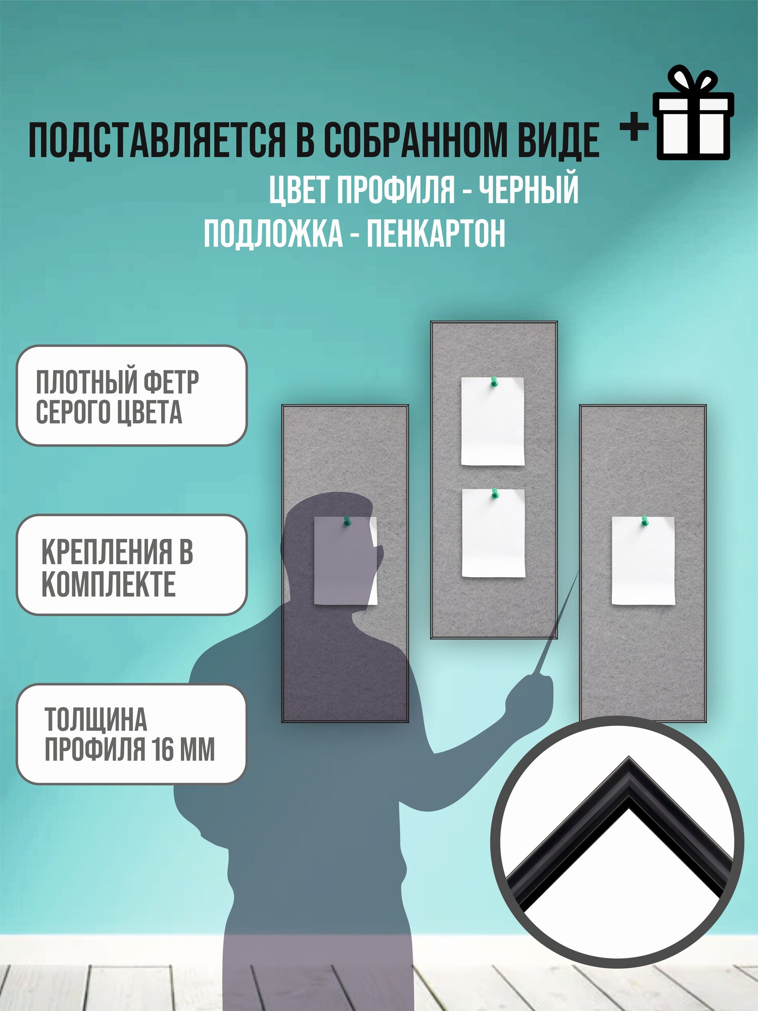Доски из фетра текстильные информационная для заметок, фото, в алюминиевой черной раме 40х100 см 3 шт интересное: