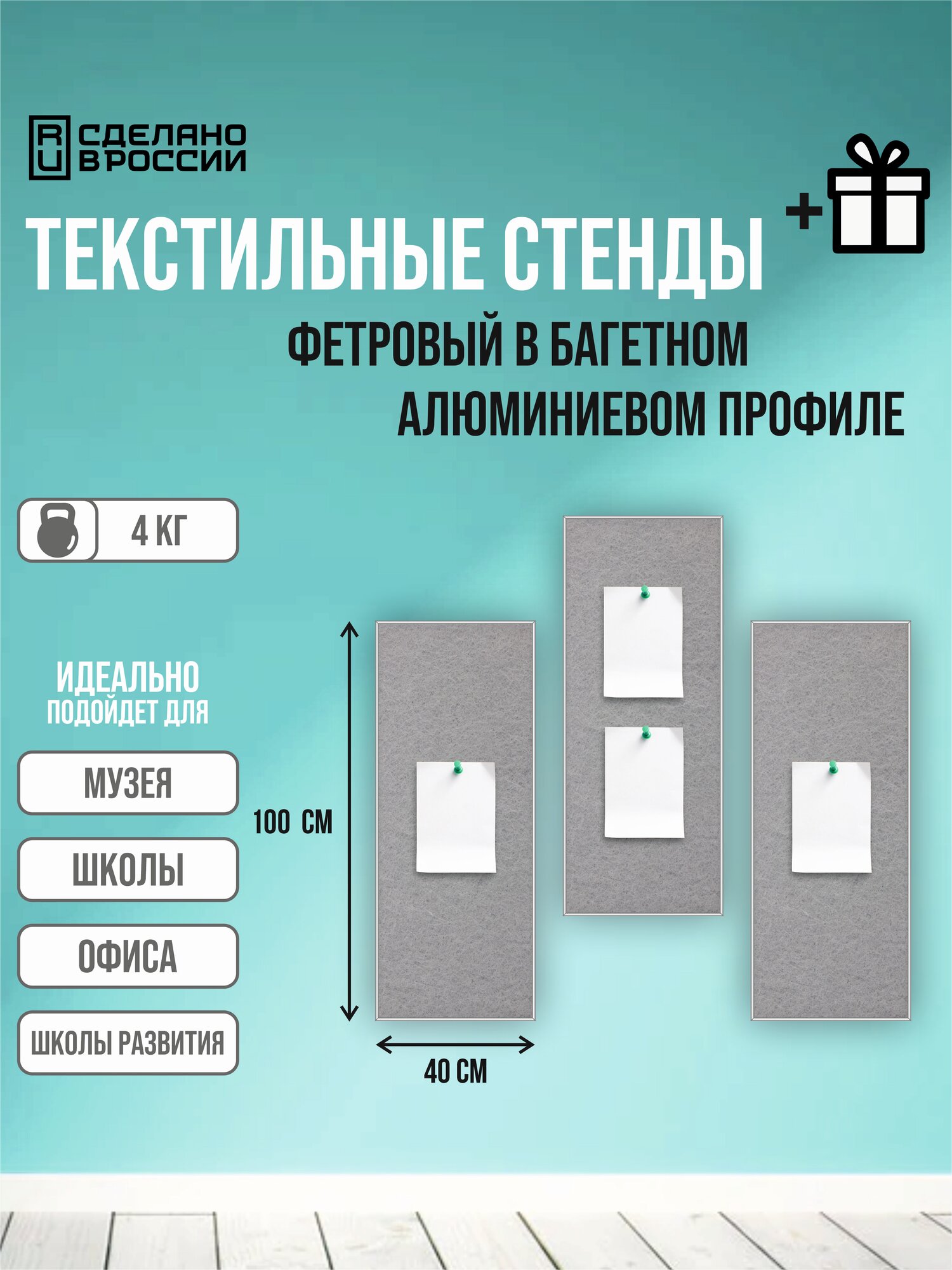Доски из фетра текстильные информационная для заметок, фото, в алюминиевой серебристой раме 40х100 см 3 шт интересное: