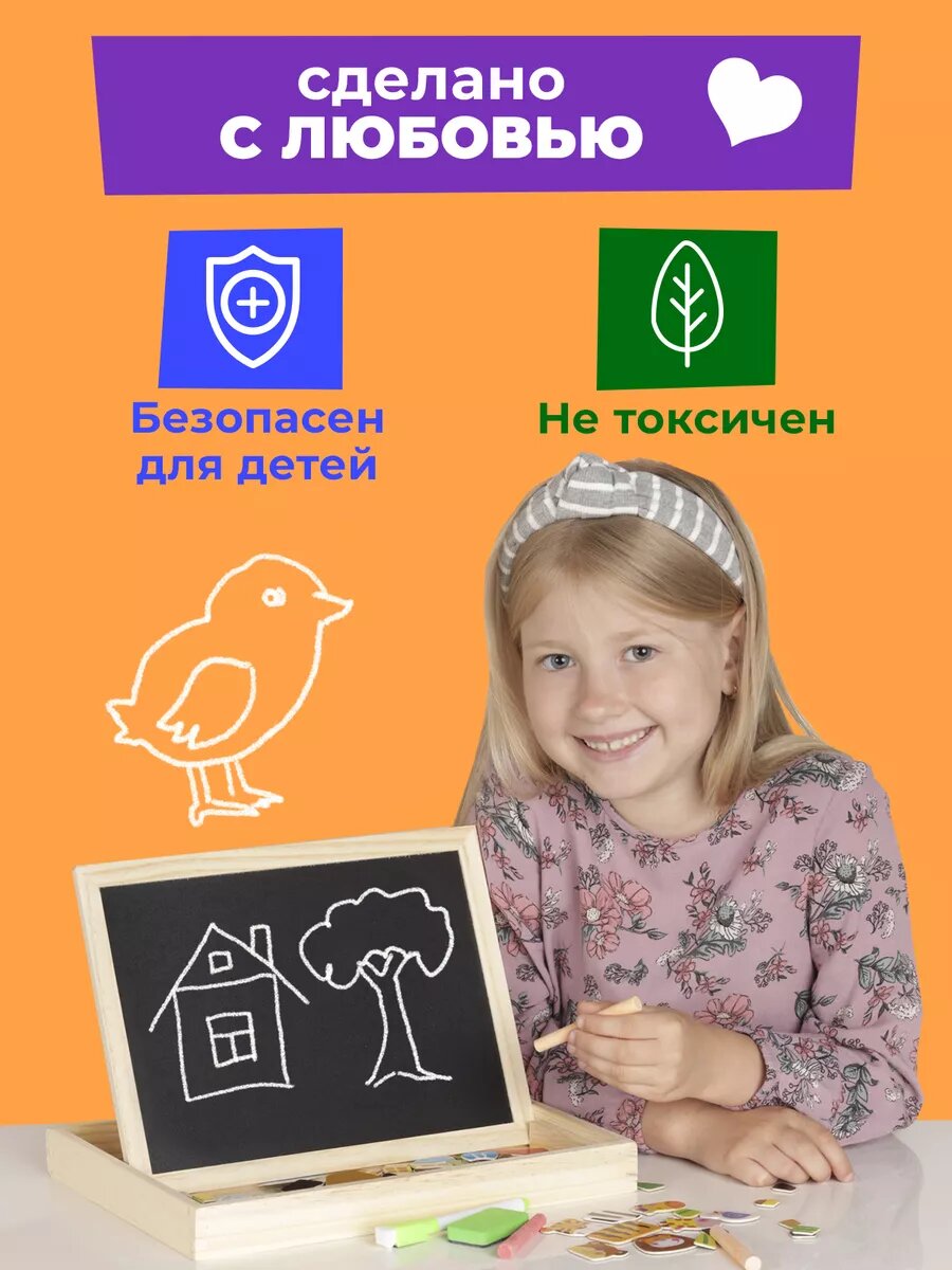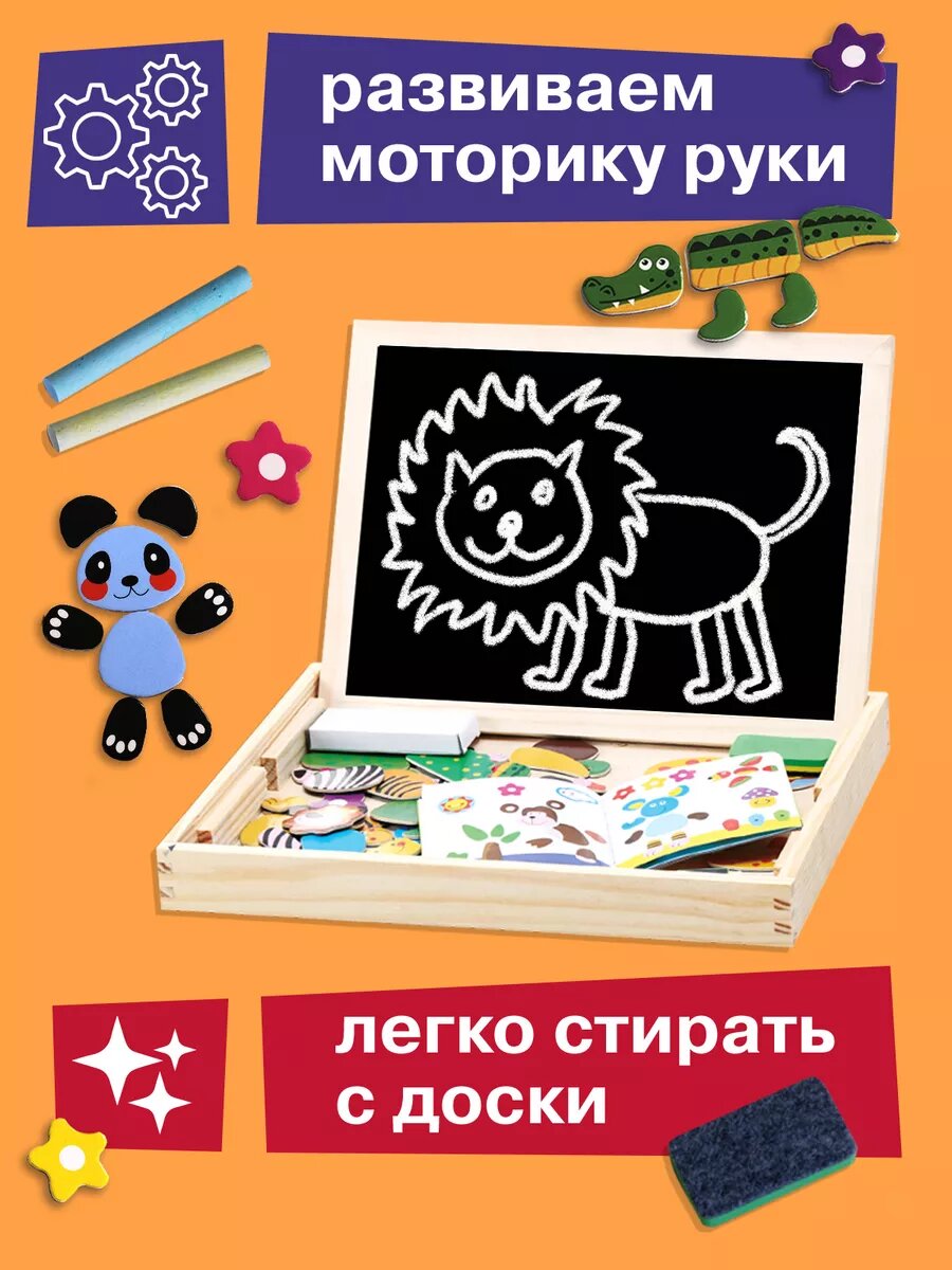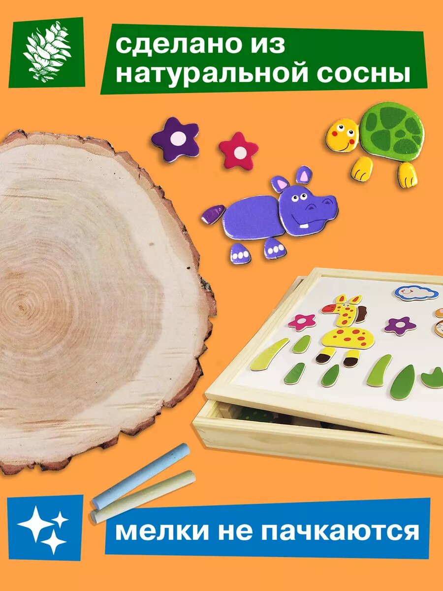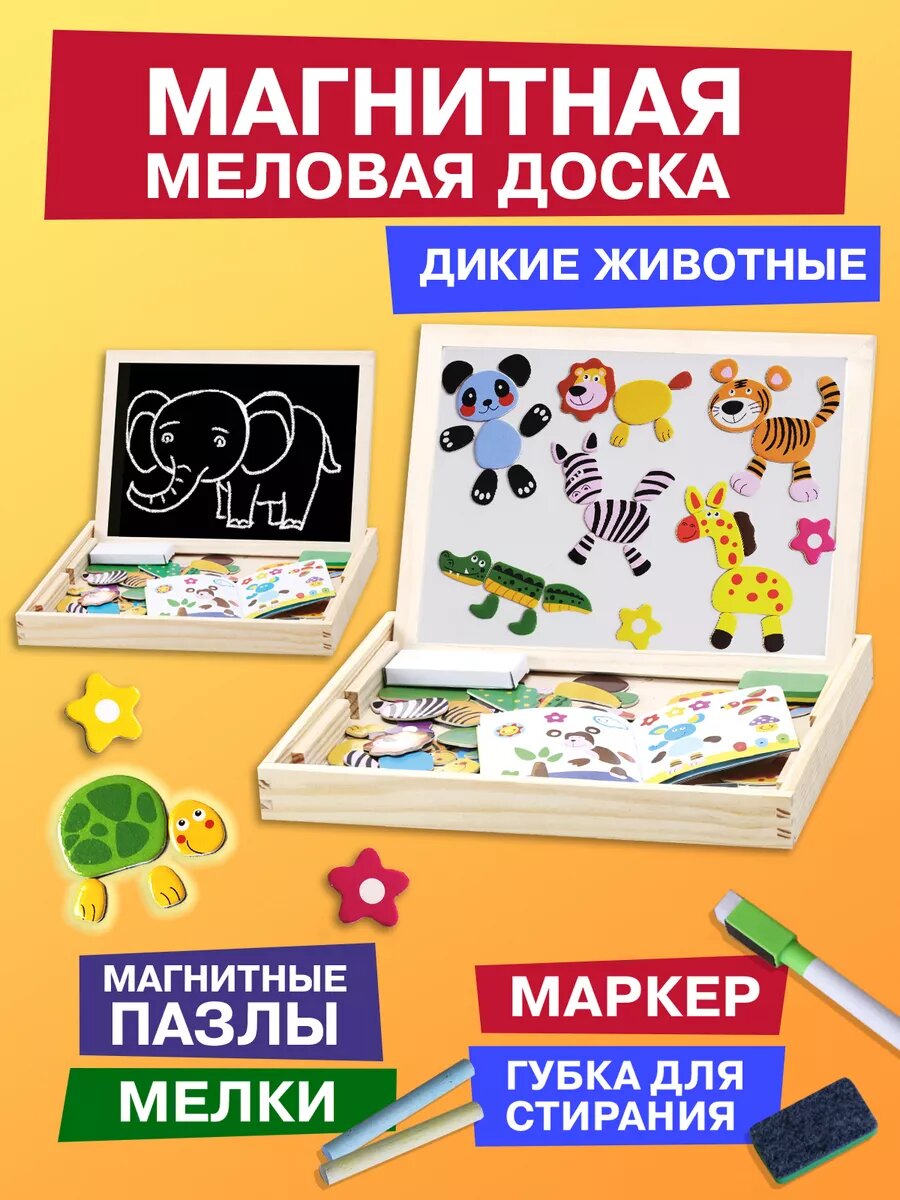 Купить Магнитная доска Skytiger "Дикие Животные", магнитная, меловая, развивающая, 20 предметов