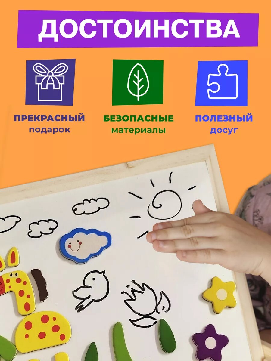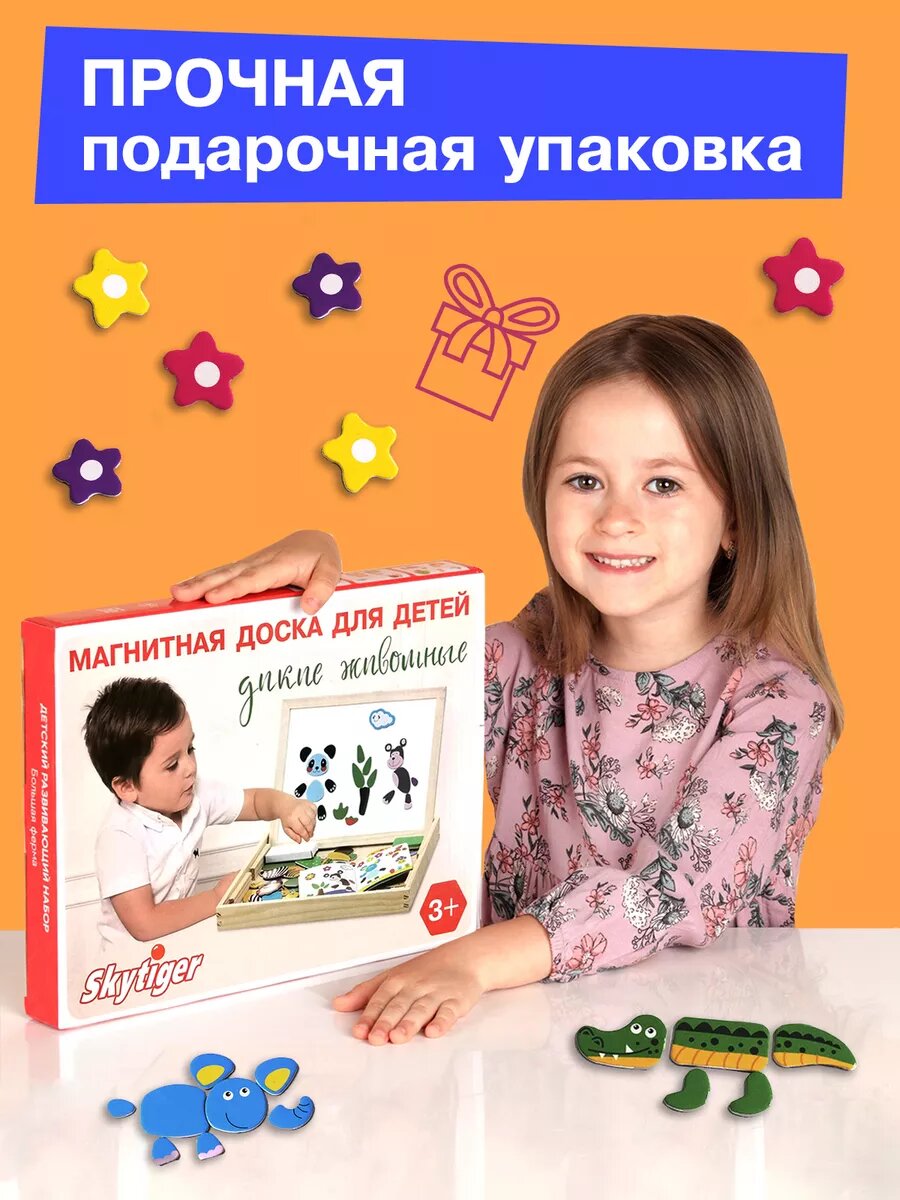 Магнитная доска Skytiger "Дикие Животные", магнитная, меловая, развивающая, 20 предметов интересное: