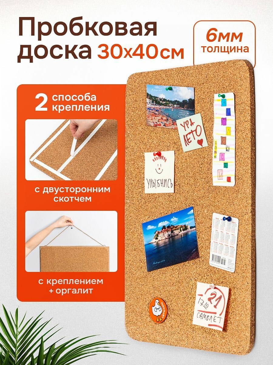 Пробковая доска для заметок 35х50х0.6 см, 100% пробка интересное: