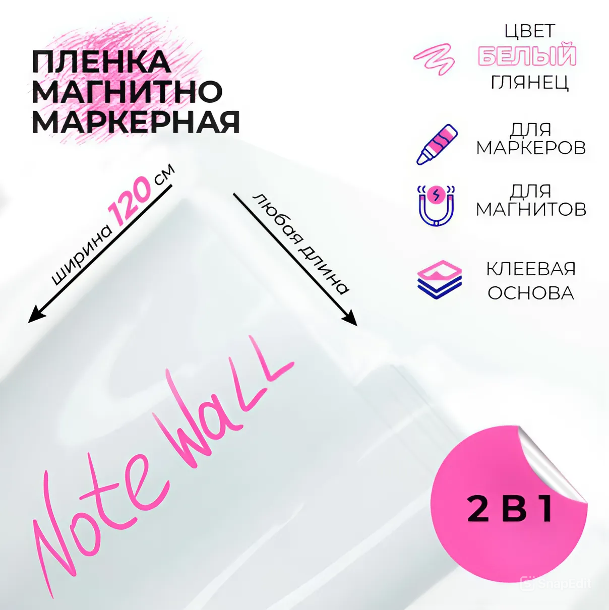 Магнитно-Маркерная пленка Dry Erase, белая глянцевая 120х100 см. интересное: