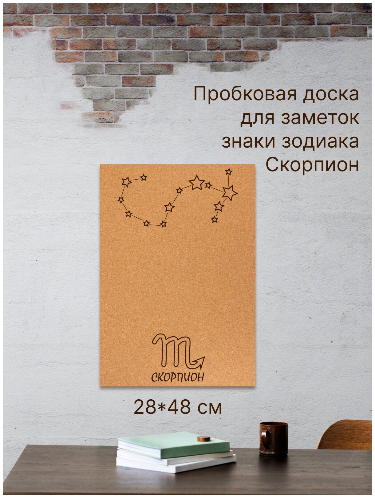 Пробковая доска без рамки для заметок на вспененной основе "Знаки зодиака. Скорпион", 48х28 см интересное: