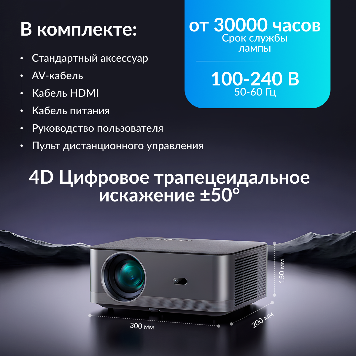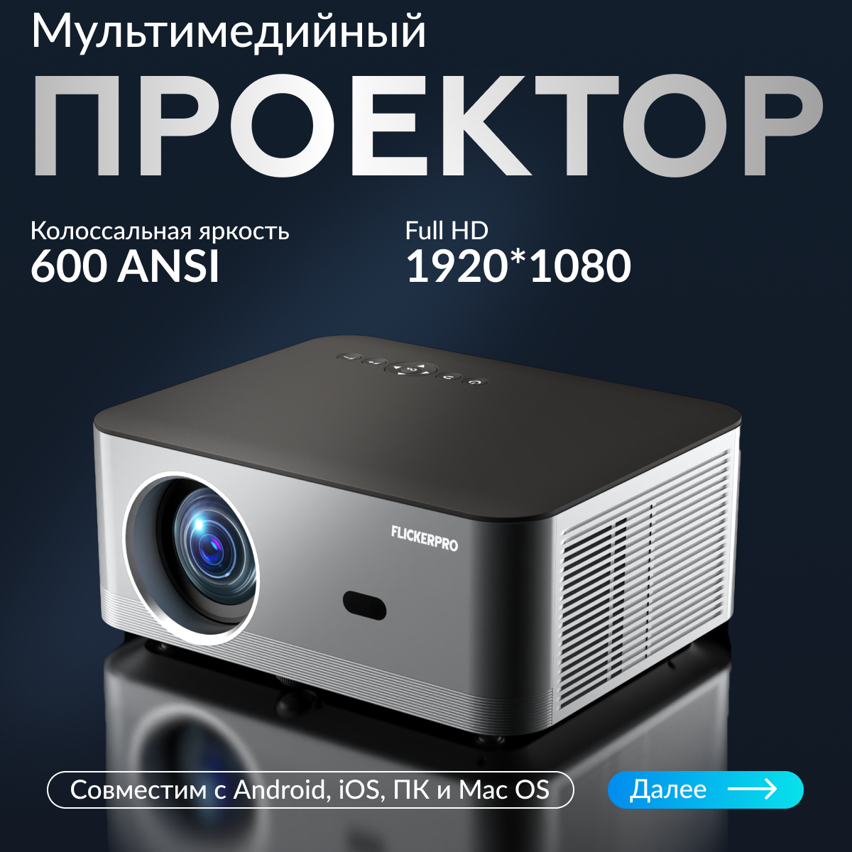 Купить Проектор для фильмов Автофокус FLICKERPRO H80 4K, Bluetooth, Wi-Fi 6, Android, USB, HDMI