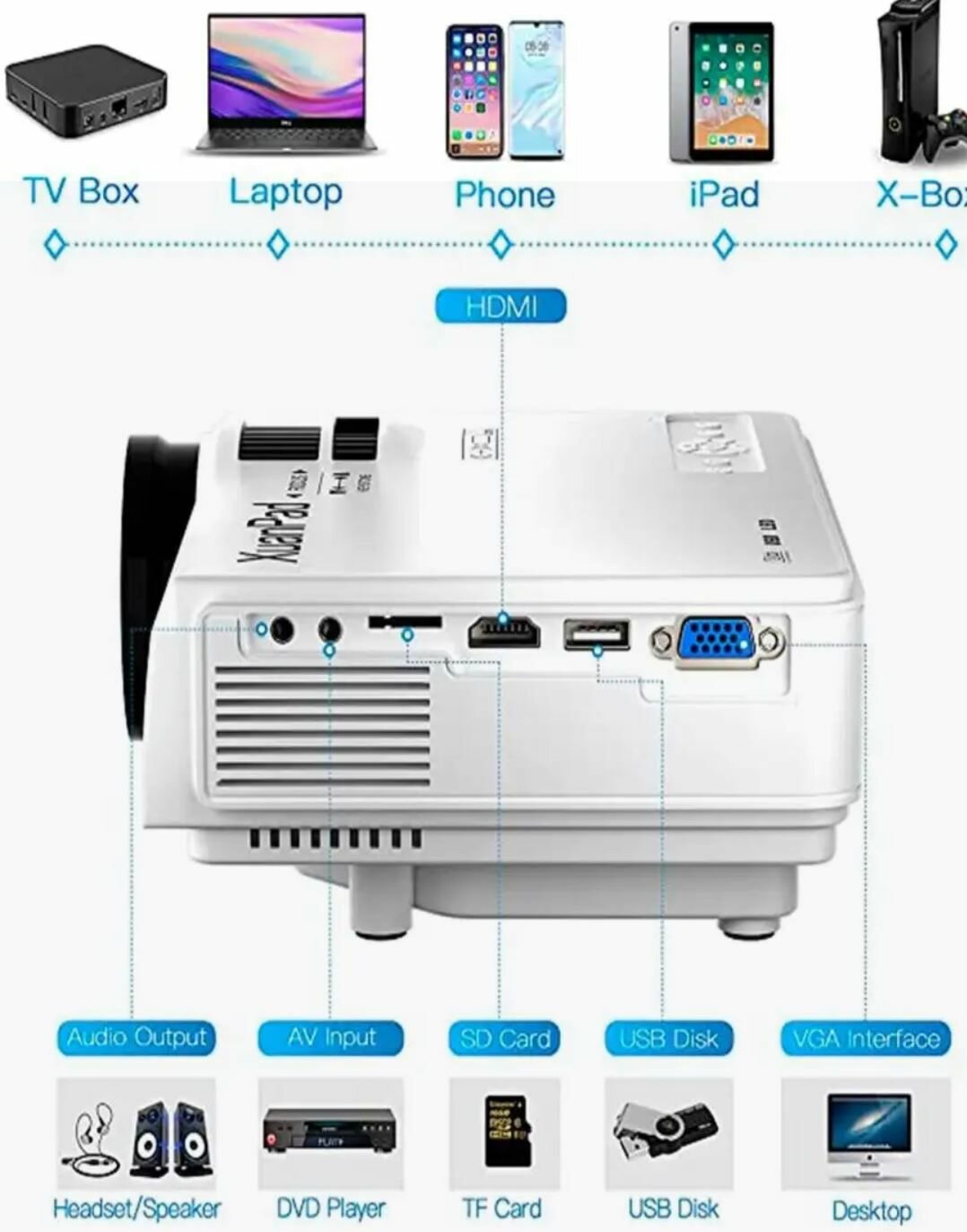 Проектор LuckyRoad M6/ Мини проектор / Проэктор / Мини проектор для фильмов / Кинопроектор / Портативный проектор интересное: