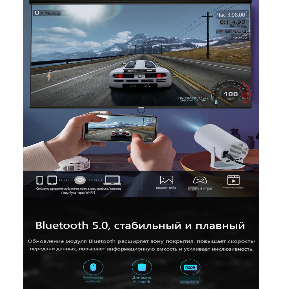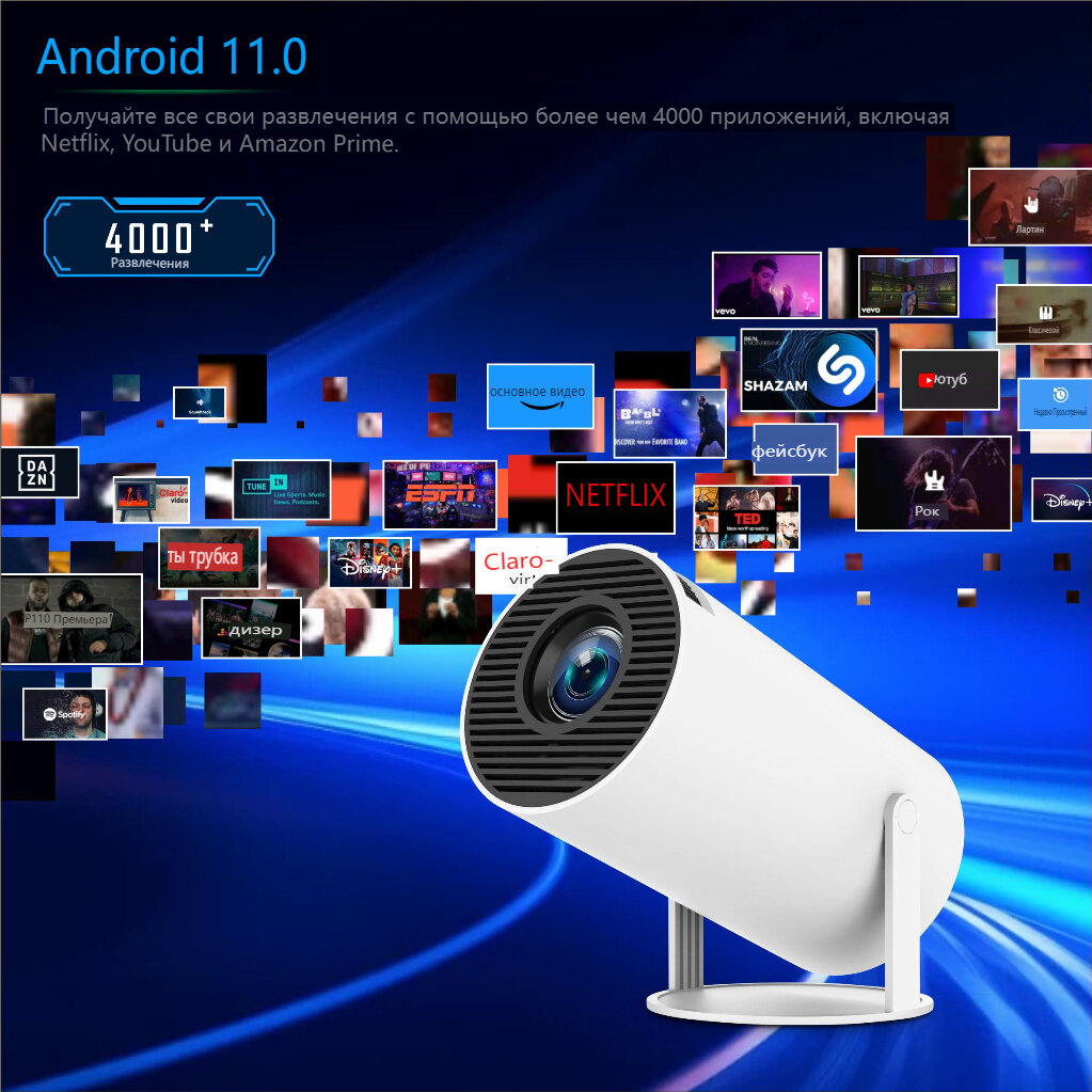 Проектор HY300Pro 4K Android 11 Dual Wifi6 360 ANSI BT5.0 1080P Умный домашний кинотеатр интересное: