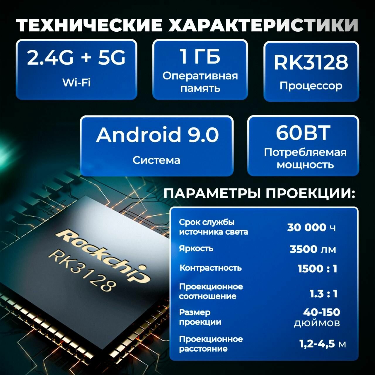 Проектор для фильмов / мини проектор 5G 2024, 1920х1080 FULL HD, Wi-Fi, Bluetooth, Встроенные динамики, 1LCD, белый интересное: