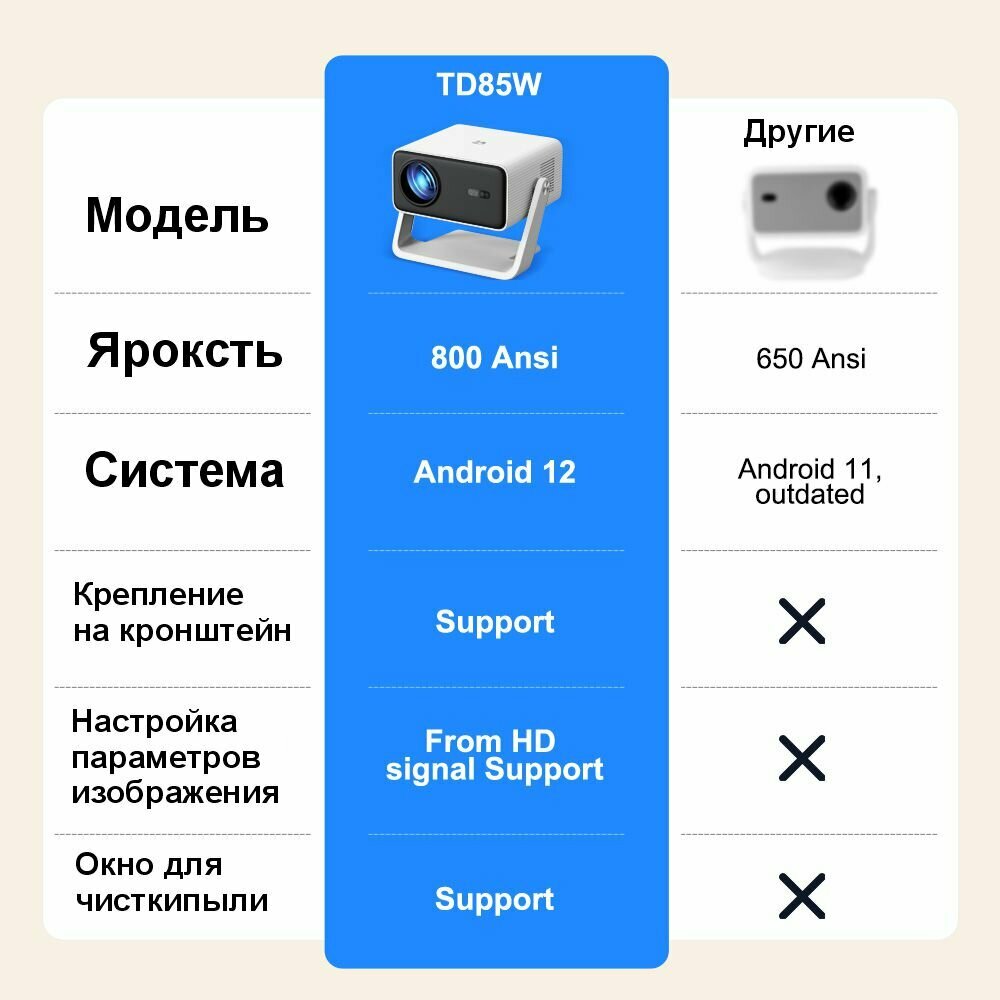 Проектор для фильмов домашний кинотеатр ThundeaL TD85W на Андроид с высоким разрешением FullHD интересное: