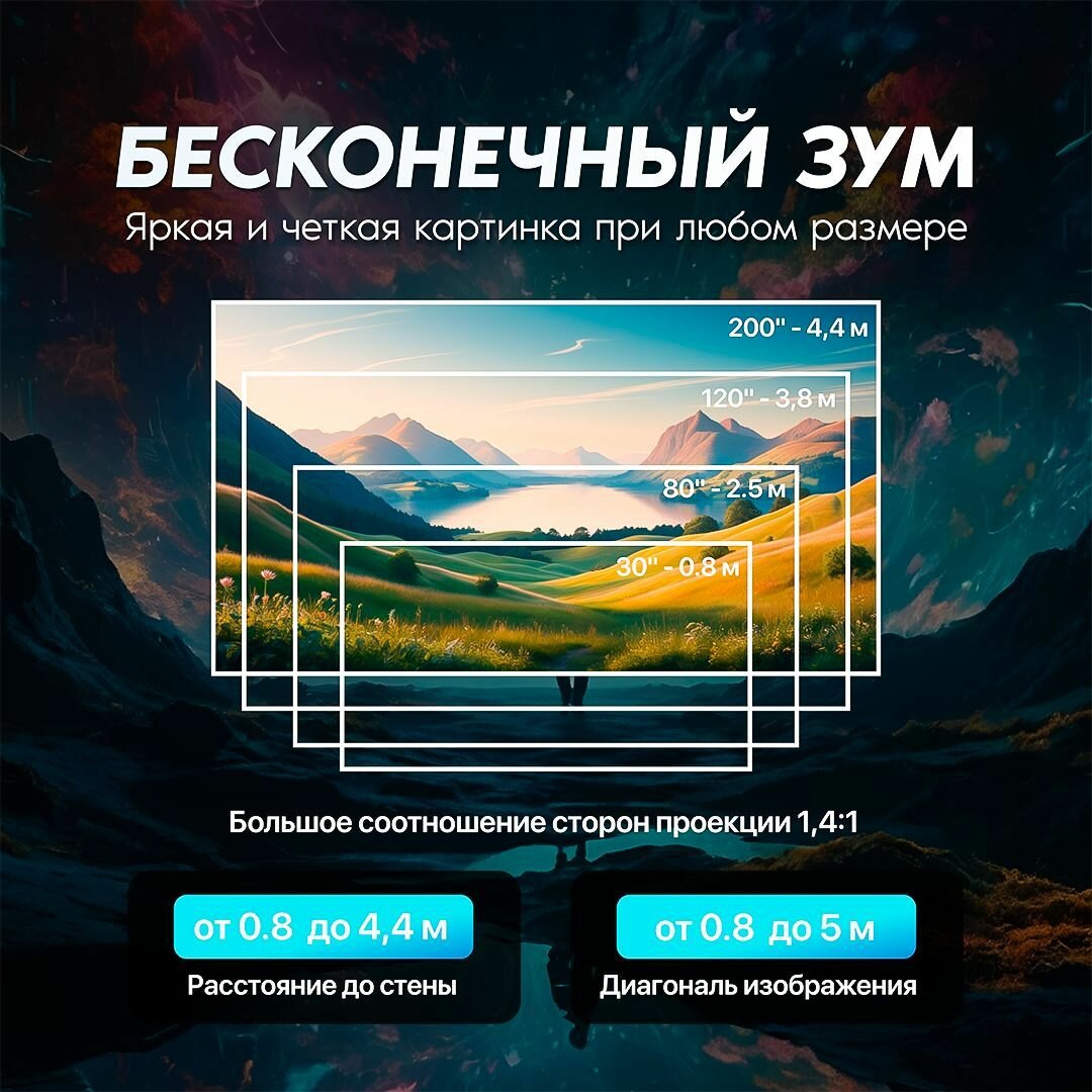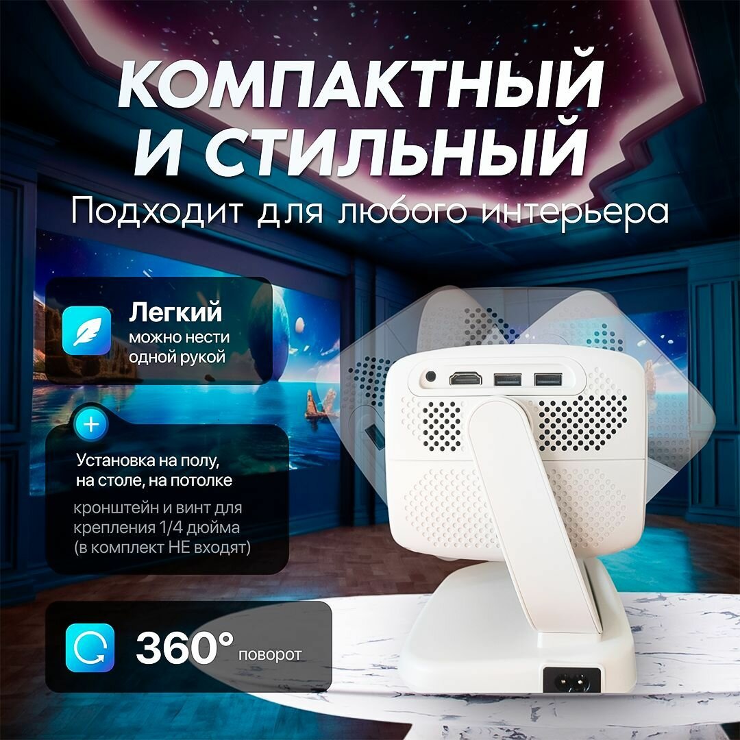 Проектор для фильмов 5G 2024, FULL HD 4К, HDMI, Wi-Fi, Bluetooth, Встроенные динамики, 1LCD, серый интересное: